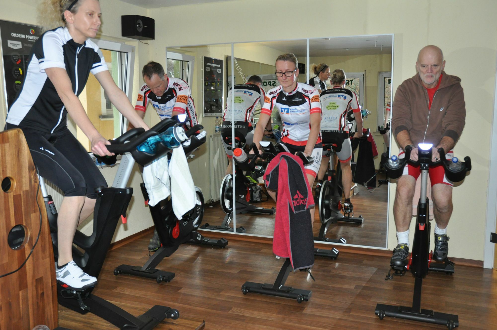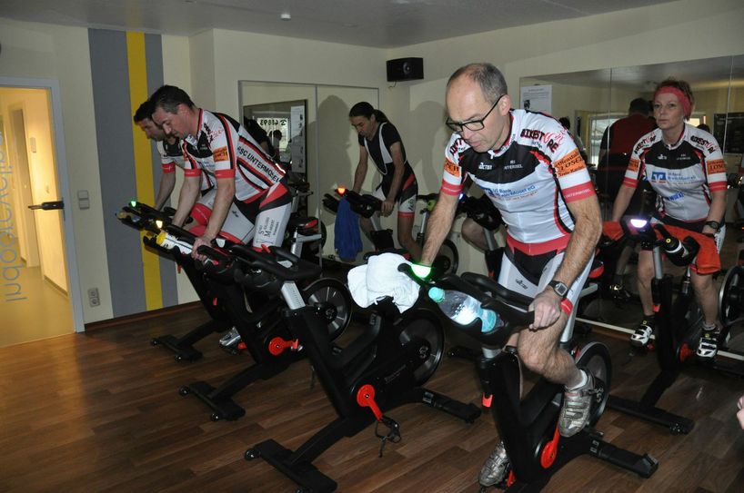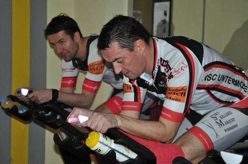 Jeden Dienstag, 19 Uhr, treffen sich die Männer und Frauen um ihren Sportwart Robert Marquet zum Kraft- und Fitnesstraining in der Sporthalle des Martin-von-Cochem-Gymnasiums. In diesem Winter kommt ein weiteres Angebot hinzu. In der Physiotherapie Braun in Cochem heißt es erstmals und jetzt regelmäßig "Indoor Cycling". Peppige Musik unterstützt das Training und lässt den Schweiß etwas lockerer fließen. "Damit wollen wir etwas Abwechslung in den Trainingsalltag bringen. Beim Spinning können wir verschiedene Trittfrequenzen trainieren. Es ist einfach ein guter Ausgleich", so Robert Marquet. Mit Arnold J. Braun haben die RSCler einen Anbieter gefunden, der als Physiotherapeut seit Jahrzehnten auch Leistungssportler betreut. "Grundsätzlich ist das Indoor Cycling gut, um Menschen zu trainieren, die Herz-Kreislauf-Erkrankungen haben. Bei den Triathleten und Radsportlern kann es eine solide Basis für die Grundlagenausdauer legen", erklärt Arnold J. Braun. Im kommenden Jahr haben die Männer und Frauen des RSC Untermosel unter anderem den "Ironman" in Roth und das 24-Stunden-Rennen bei "Rad am Ring" auf dem Programm. Fotos: Pauly www.rsc-untermosel.de