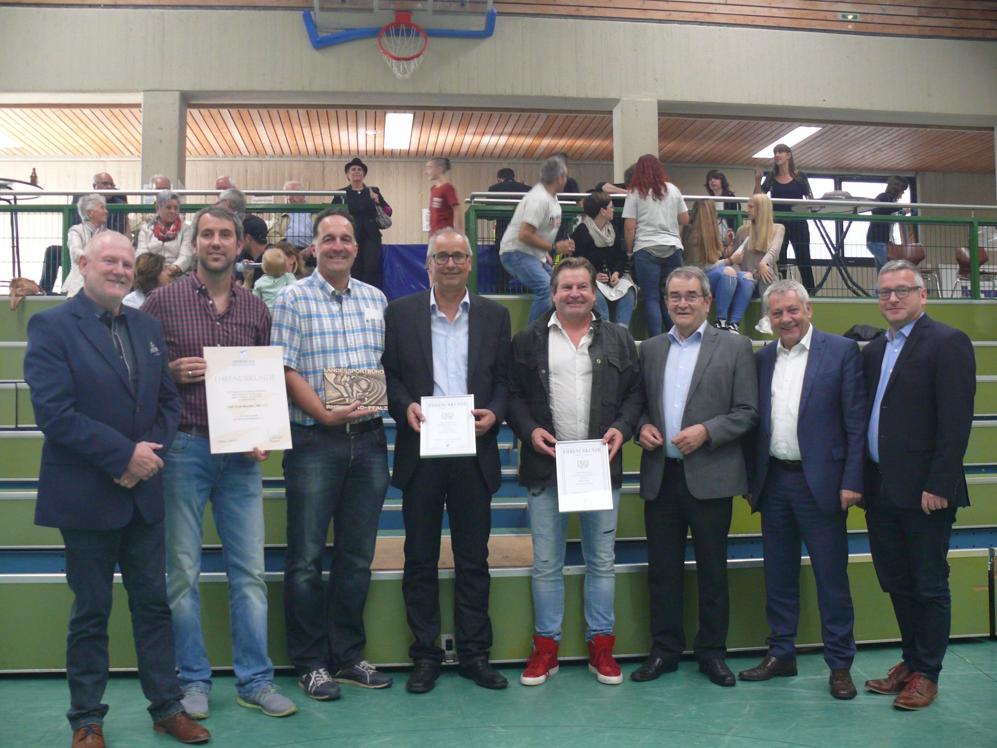 Landrat Manfred Schnur würdigte das Engagement der Verantwortlichen und lobte das breite und moderne Sportangebot im Verein: neben Fußball und Basketball auch Volleyball, American Football und Tischtennis sowie Aerobic, Ballett, Judo, Kinderturnen und Wirbelsäulengymnastik. Ebenso richtet der TuS bereits seit mehr als 15 Jahren eine Skifreizeit und verschiedene Jugendfreizeiten in den Ferien aus und bietet in den vergangenen Jahren zudem regelmäßig Tanzkurse an. Dirk Mandernach, 1. Vorsitzender des TuS, gab dieses Lob sogleich dankend an die Abteilungsleiter und Jugendtrainer weiter, die mit ihrer ehrenamtlichen Tätigkeit all dies überhaupt erst ermöglichen. Foto: privat www.tustreis-karden.de