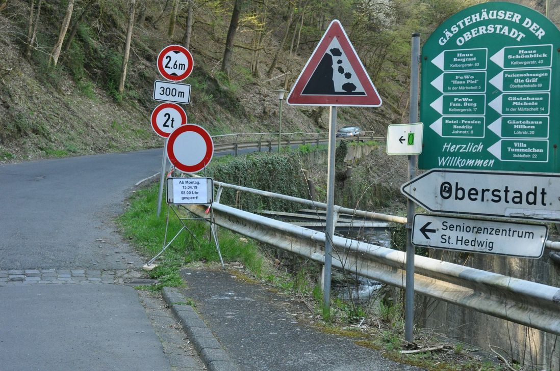 Grund sind, so Stadtbürgermeister Walter Schmitz, Fällarbeiten von biszu sieben Bäumen. Die Strecke in Richtung Oberstadt werde, so der Stadtbürgermeister, voraussichtlich am Montagabend, spätestens am Dienstag wieder freigegeben. Foto: Pauly