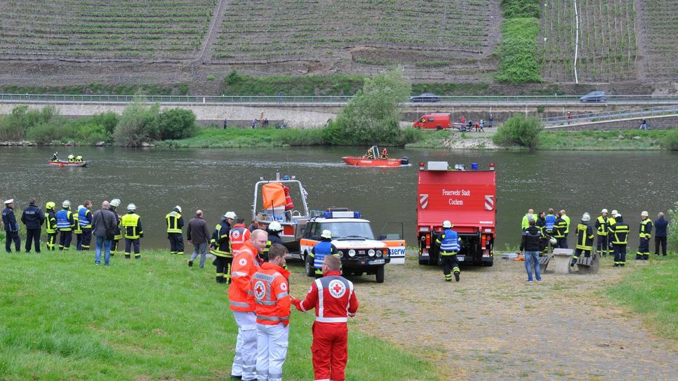 Bei dem Auto soll es sich um einen dunklen Kombi gehandelt haben. Die Freiwilligen Feuerwehren aus Ernst, Bruttig und Cochem haben die Suche sofort aufgenommen. Später kamen noch Einsatzkräfte aus Beilstein, Poltersdorf, der DRK-Wasserwacht und der Wasserschutzpolizei hinzu Vor Ort waren zeitweise ein Notarzt, zwei Polizeihubschrauber und der Rettungshubschrauber. Foto: Hommes