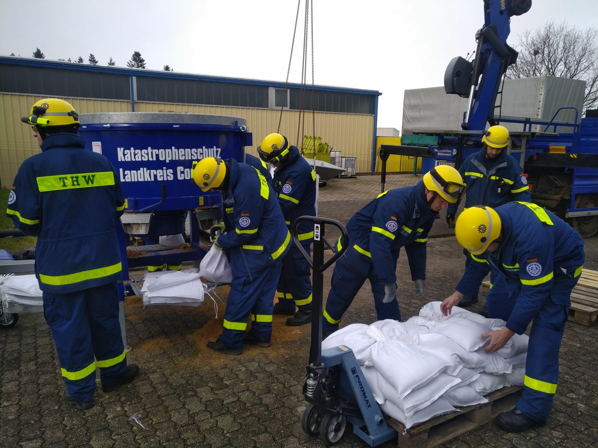 Der Ortsverband (OV) Cochem wurde angefordert, um die Absicherung einer Turnhalle in der Stadt Cochem zu gewährleisten. Dort soll ab dem Wochenende der Cochemer Karneval seine Heimstatt haben. Helfer des Ortsverbands trafen sich auf dem Unterkunftsgelände in Cochem-Brauheck und begannen Sandsäcke zu befüllen – der erste Echteinsatz der neuen Sandsackbefüllanlage! Die Befüllung klappte reibungslos und es konnten in kürzester Zeit 500 Sandsäcke befüllt werden. In der Turnhalle angekommen, musste zusätzlich noch ein Schacht leergepumpt werden. Die Ausgänge der Turnhalle zur Ravenéstraße wurden mit Folien und Sandsäcken verschlossen. Wer sich von der Funktion der Sandsackbefüllanlage selber überzeugen will, kann zur offiziellen Vorstellung der Anlage am Samstag, 8. Februar, ab 11.30 Uhr, auf das Gelände des Ortsverbandes nach Cochem-Brauheck kommen. Foto: THW Cochem https://ov-cochem.thw.de/