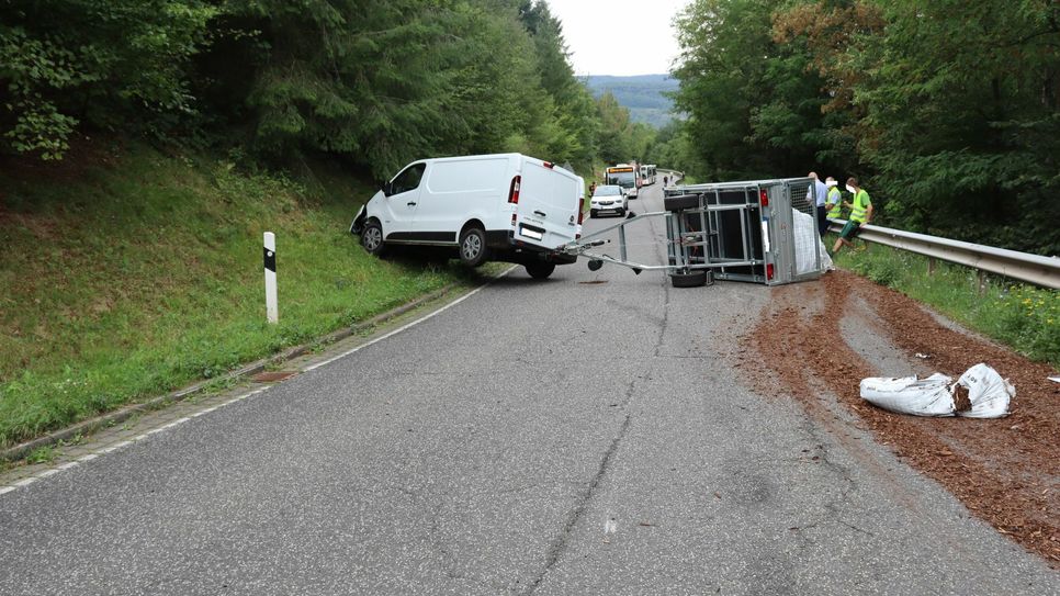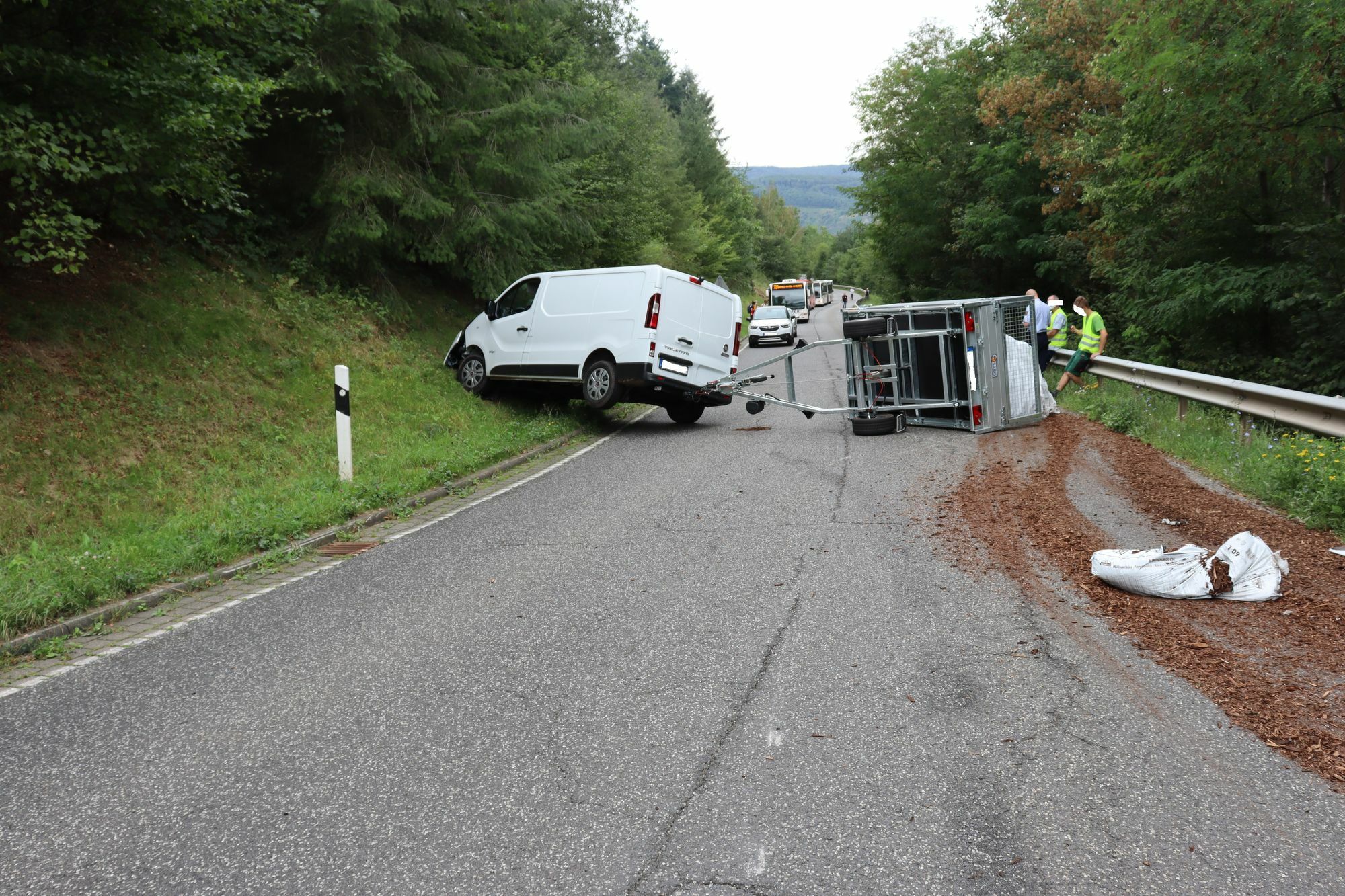 Ein umgekippter - mit Rindenmulch beladener - Anhänger hat am frühen Freitagnachmittag, 28. August, die neue Barlauffahrt in Zell blockiert.