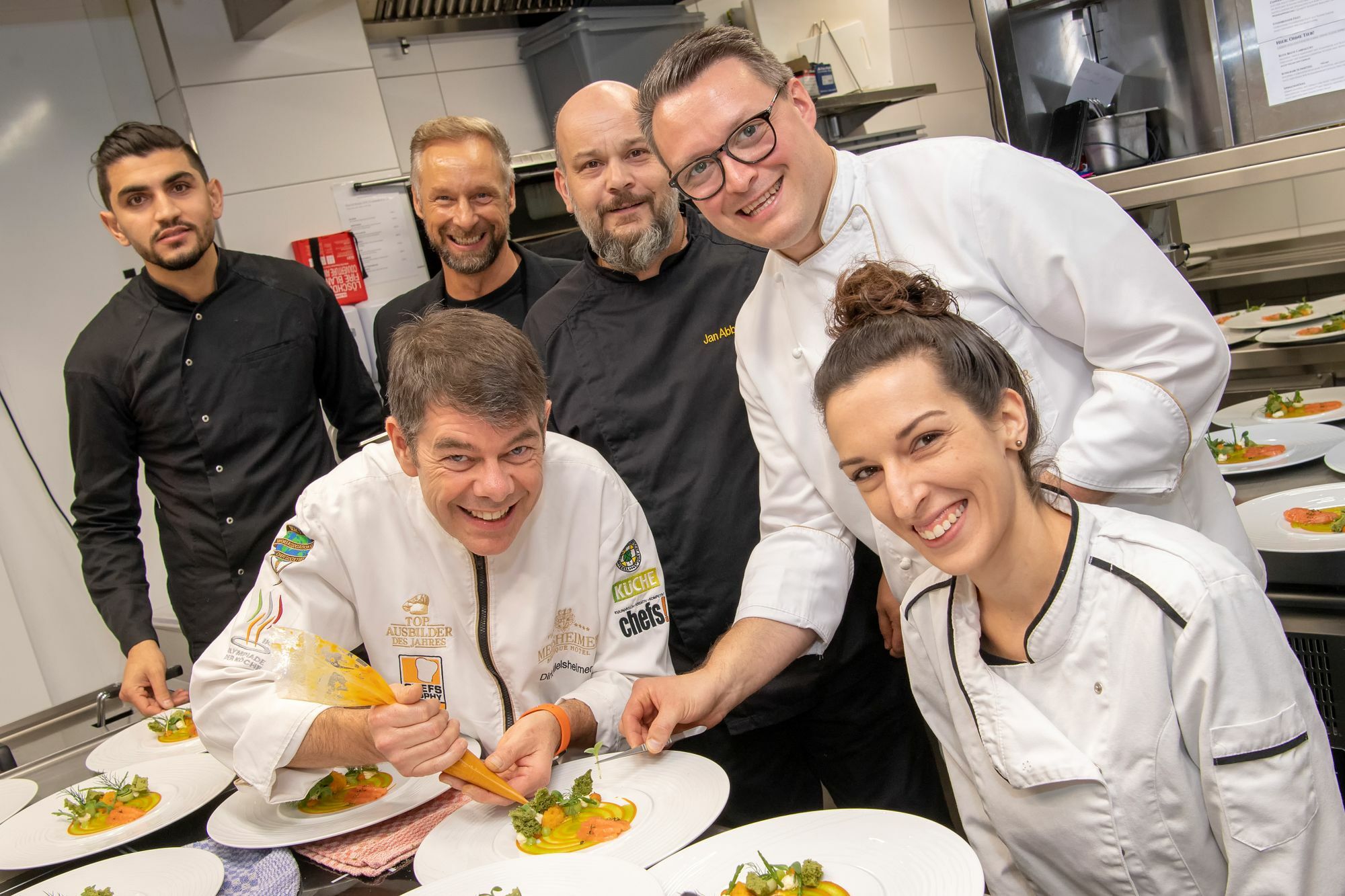 Die Küchenchefs der "Mein Lokal, Dein Lokal"-Teilnehmer von der Mosel waren jetzt in jedem Lokal einmal gemeinsam in Action. Auch im Hotel "Moselgarten" von Jan Abbruzzino (3. v. r.)  in Bullay gab es ein 5-Gänge Menü.