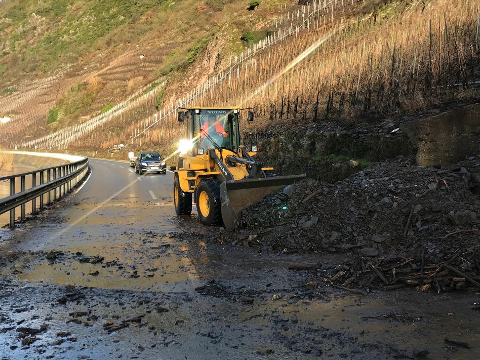 Sturmtief „Sabine“ sorgt weiterhin für Beeinträchtigungen in mehreren Orten. Zwischen Bruttig-Fankel und Valwig ist aktuell die L 98 betroffen. Hier sind an einem Bachlauf Geröllmassen heruntergerutscht und blockieren die Fahrbahn. Die Straßenmeisterei ist im Einsatz. Mit schwerem Gerät wird aktuellem die Fahrbahn gereinigt. Sonst ist der Kreis Cochem-Zell bislang noch relativ glimpflich davon gekommen. Video: Zender