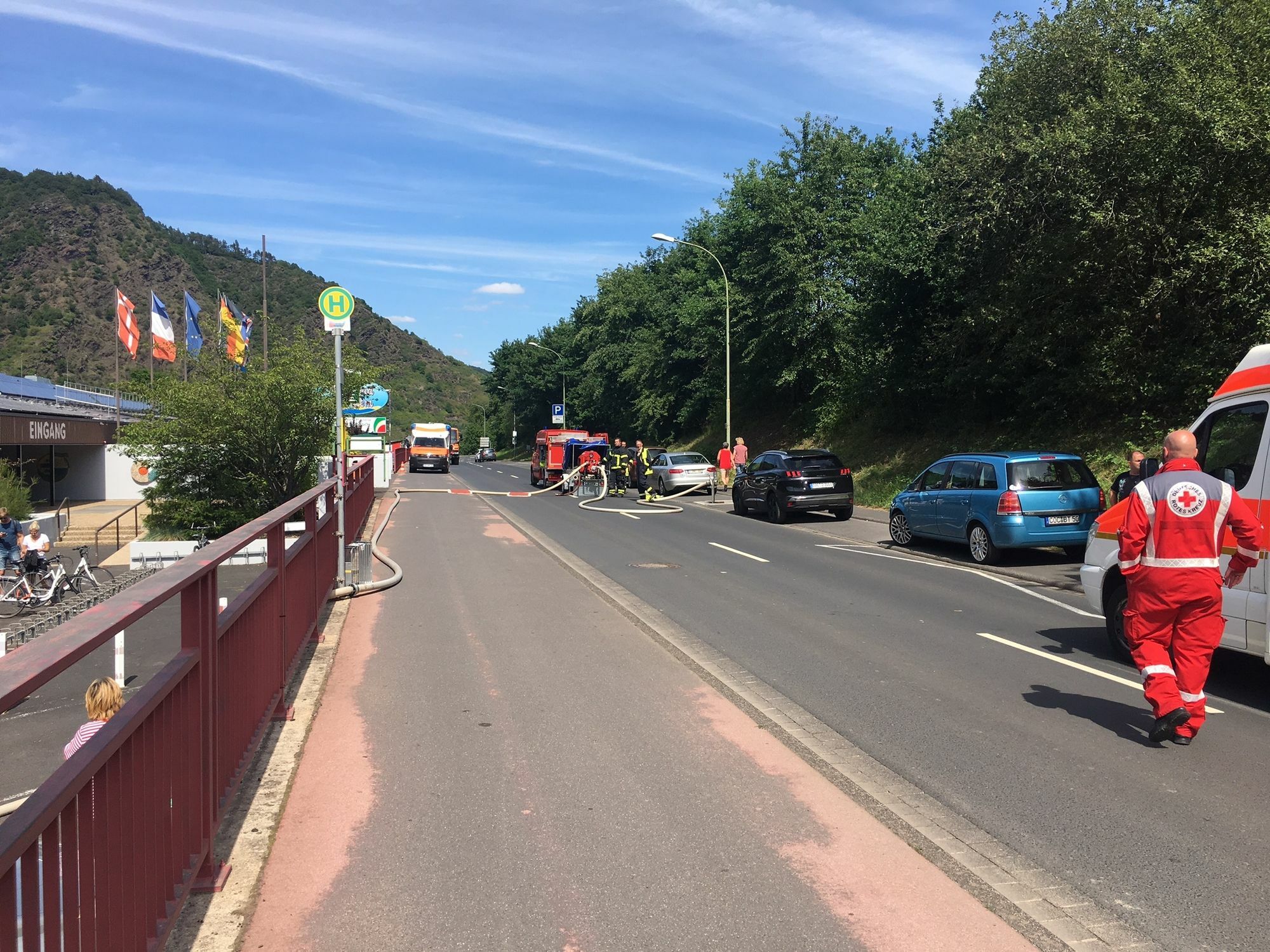 Kurz nach 14.30 schreckt die Menschen in Cochem Sirenenalarm hoch. Es handelte sich um ein Lagerbecken, in dem sich circa 40 bis 50 Kubikmeter Holzhackschnitzel befanden, mit denen die Heizungsanlage der Schwimmbadanlage befeuert wird. Aufgrund der großen Masse an brennenden brauchten die örtlichen Feuerwehren rund 2 1/2 Stunden, um das Feuer komplett zu löschen. Der Badebetrieb konnte aufrecht erhalten werden. Personen sowie Gebäude kamen nicht zu schaden. Möglicherweise könnte ein technischer Defekt der Förderanlage für das Feuer ursächlich sein. Die polizeilichen Ermittlungen wurden aufgenommen.