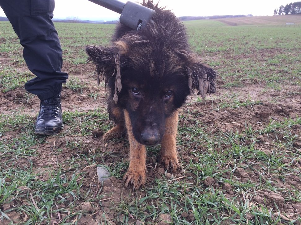 Mehrere Autofahrer meldeten unabhängig voneinander zunächst einen offensichtlich verwahrlosten Schäferhund-Mischling an der vielbefahrenen Landesstraße 98/ K13. Anschließend wurde ein zweiter Hund in rund zwei Kilometer Entfernung an der L98 gemeldet. Der Polizei gelang es zunächst die beiden Hunde aus dem Gefahrenbereich der Straßen auf ein Feld beziehungsweise in eine Bushaltestelle zu dirigieren. Insbesondere durch die Hinzuziehung von Polizeidiensthundeführern aus Koblenz und deren Geschick wurden die Hunger und Durst leidenden, total verwahrlosten, verdreckten und offensichtlich verletzten Hunde, die kaum noch laufen konnten, soweit zutraulich, dass sie von einer Expertin der Rettungshundestaffel aus Lahnstein in eine Tierklinik nach Mayen gebracht werden konnten. Die parallel geführten örtlichen Ermittlungen in den angrenzenden Gemeinden nach dem/den Hundehalter/n verliefen bislang ohne Erfolg. Nach einer tierärztlichen Erstbehandlung wurden die Hunde - auch die später in einem Garten in Düngenheim aufgefundenen - in ein Tierheim zur weiteren Behandlung und Erholung gebracht. Nach bisheriger Eischätzung handelt es sich vermutlich um ausgesetzte, sogenannte "Importhunde" aus dem Ausland. Es bestehe aber auch die Möglichkeit einer Aussetzung durch ansässige Hundehalter. Die Hunde hielten sich vermtulich über eine längeren Zeitraum - möglicherweise Wochen - im Freien auf. Es wurde eine Anzeige wegen des Verstoßes gegen das Tierschutzgesetz gefertigt. Hinweise auf den/die Hundeeigentümer an die Polizei in Cochem unter 0 26 71 / 98 40. Fotos: Polizei