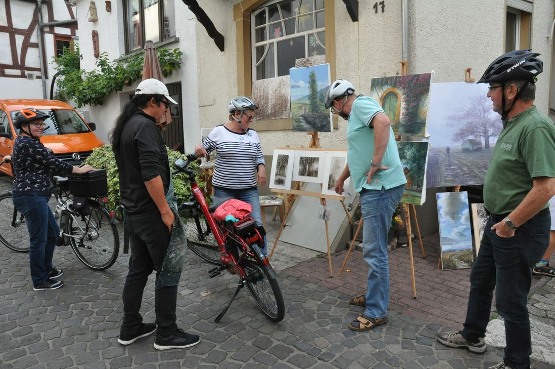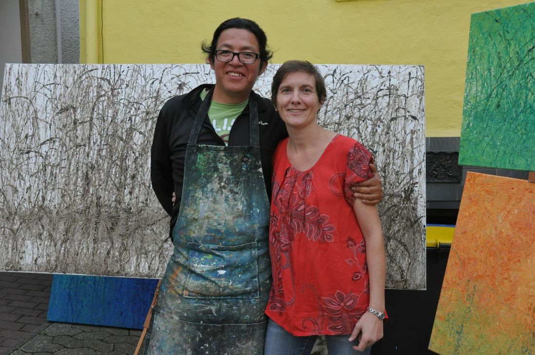 Wer durch die Pündericher Kirchstraße in Richtung Mosel geht, bleibt bei gutem Wetter am Haus mit der Nummer 17 sicher stehen. Denn hier hat Jorge A. Morales (45) manchmal ein Freiluft-Atelier aufgebaut. Der Mann aus Guatemala lebt seit 2017 hier mit seiner Frau Anouk und seinen drei Kindern. Anouks Großmutter ist Pündericherin und ihre Enkelin kümmert sich nach einer Erkrankung um sie. "Die Kinder haben sich gut eingelebt und uns gefällt es hier in Pünderich auch", erzählt die gebürtige Frankfurterin, die ihren Mann als Stipendiatin in Guatemala beim Salsa-Tanzen kennengelernt hat. Als sie das erzählt müssen beide lachen.Es war wohl Schicksal, wie so vieles im Leben, dass sich die Wege des Malers und der Diplom-Pädagogin kreuzten. Jorge A. Morales verdiente sein Geld zunächst mit Fußball. Ab seinem 16. Lebensjahr war er Profi in der ersten guatemaltekischen Liga. Nach einer Verletzung reichte es nur noch für die zweite Liga und fortan musste er, um seinen Lebensunterhalt zu bestreiten, als Bauhandwerker seinen Vater unterstützen. "Das hat mir keinen großen Spaß gemacht. Als ich mit 20 einen Kunstkalender in die Finger bekam, wusste ich, was ich wollte: malen", erinnert er sich. Als Autodidakt versuchte er sich zunächst mit Aquarellen, später mit Öl und Spachtel. Seine Bilder sind sowohl realistisch als auch abstrakt. In den vergangenen Wochen hat er ein Bild von der Pündericher Kirchstraße gemalt. Sein Stil ist dabei unverkennbar. Er spielt mit "Regen" und mit Licht und Schatten. "Ich habe als junger Mann ein Bild in einer Galerie gesehen, das mit Regen und Wasser spielte. Der Regeneffekt hat mich fasziniert. Es wirkte zwar melancholisch, aber auf mich unheimlich entspannend", beschreibt er den Weg zu seiner künstlerischen Liebe. Die wahre Liebe führte ihn und seine Frau 2004 zusammen. 2005 wurde geheiratet und seit dieser Zeit wechselte ihr Wohnort zwischen Deutschland und Guatemala. Die Familie lebte sogar schon an der Mosel - in Enkirch. Und an der Mosel entdeckte er auch seine zweite Leidenschaft: die abstrakte Malerei. "Abstrakte Kunst ist meine Landschaft", erklärt der Künstler, der jüngst unter anderem Ausstellungen in Bern, Regensburg und Guatemala bestückte. Stuttgart und Dänemark heißen die kommenden Ausstellungsorte. "Hier in Pünderich kann er die nächsten 20 Jahre noch malen, so viele Motive gibt es", lacht seine Frau vielsagend. Fotos: Pauly Video: Peter Friesenhahn www.jorge-a-morales.de
