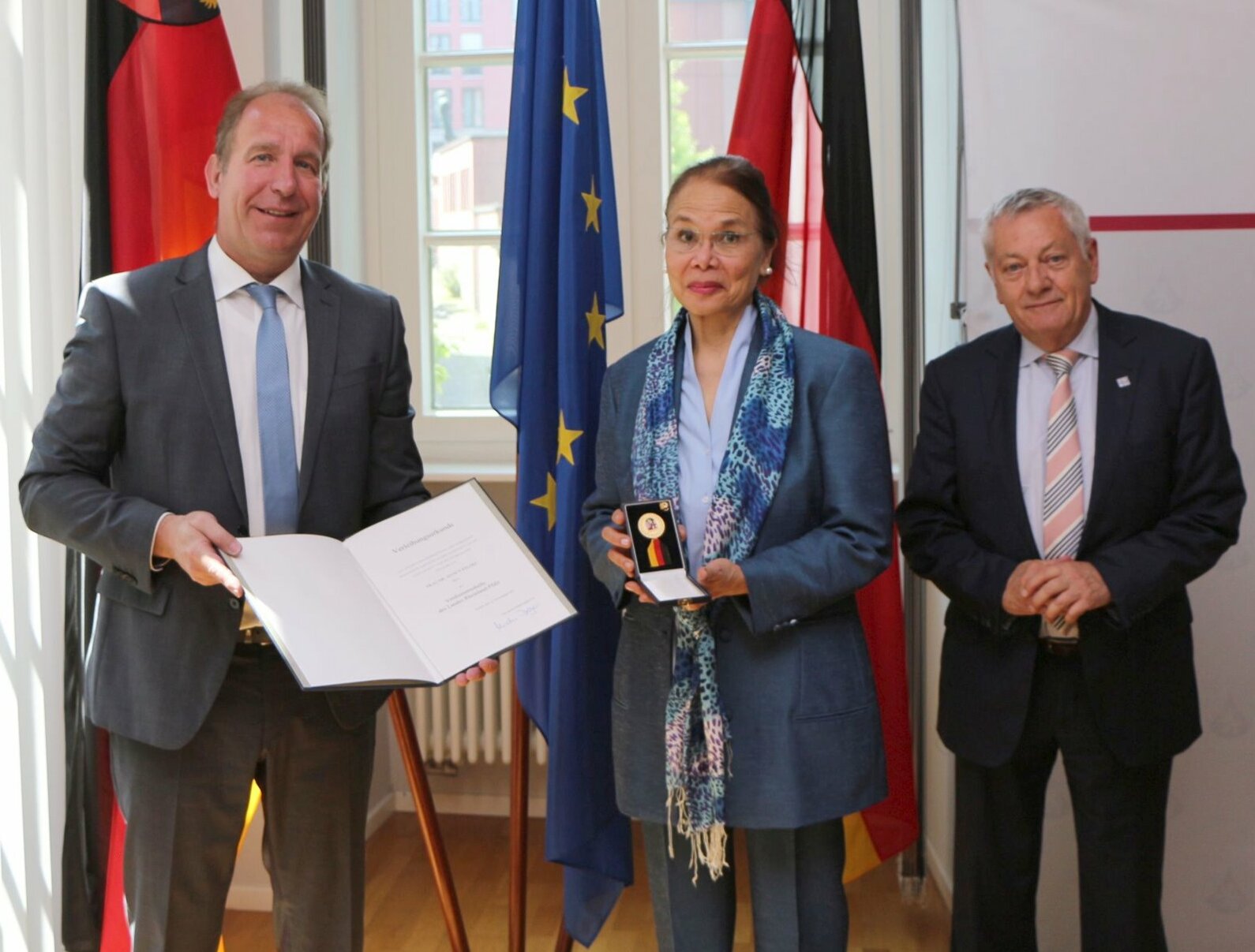 Der rheinland-pfälzische Innenstaatssekretär Randolf Stich hat Dr. Nancy Felske aus Zell die von Ministerpräsidentin Malu Dreyer verliehene Verdienstmedaille des Landes Rheinland-Pfalz überreicht.