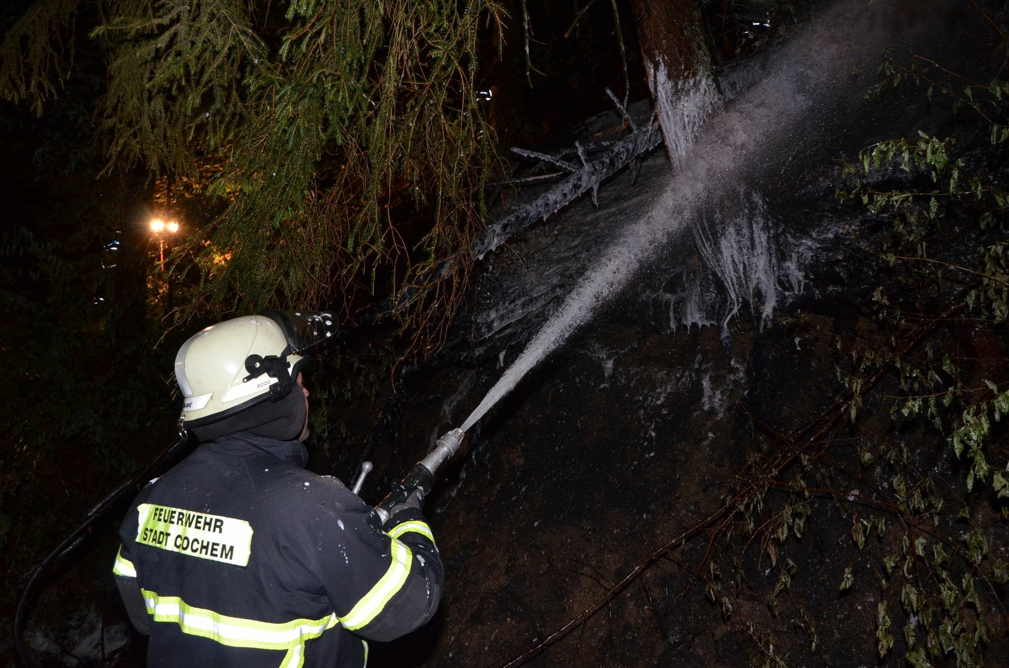 Rund 120 Feuerwehrleute konnten die rund einen halben Hektar große Fläche löschen können, bevor sich der Brand weiter ausbreitete. Cochems Stadtbürgermeister Wolfgang Lambertz lobte vor Ort das gute Zusammenspiel der verschiedenen Freiwilligen Feuerwehren der VG Cochem und dankte den Einsatzkräften für Ihre professionelle Arbeit.  Fotos: Zender