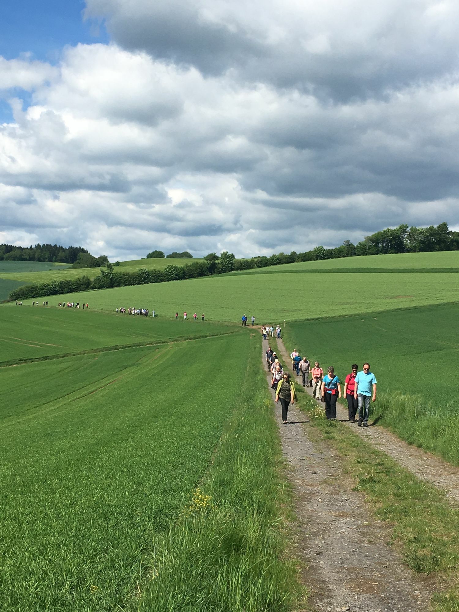 Die Orte, die durch den Wanderweg miteinander verbunden sind, bieten einige Anlaufstellen zum Verweilen und die Möglichkeit in einem der Gastronomiebetriebe die regionalen und kulinarischen Besonderheiten der Eifel kennenzulernen. VG-Bürgermeister Albert Jung wies in seinem Grußwort auch auf den besonderen Streckenverlauf hin: "Der ,Steinbach Rundweg Masburg‘ wurde bewusst so angelegt, dass er nicht nur an den einzelnen Orten vorbeiführt, sondern die Wanderer in die Dörfer führt."Zudem bedankte er sich beim Heimat- und Verkehrsverein Masburg für die Zusammenarbeit und die Übernahme der Patenschaft des Weges. Gemeinsam startete nach der Eröffnung die Wanderung durch Wiesen und Wälder in Richtung Urmersbach. Dort organisierte der Heimat- und Verkehrsverein Masburg eine kleine Raststation. Frisch gestärkt ging es weiter Richtung Kaisersesch. Auf der Terrasse des "Waldhotels Kurfürst" konnten die Wanderer eine kleine Mahlzeit zu sich nehmen, bevor sie über den Galberg, der höchsten Erhebung des "Schieferlandes Kaisersesch", wieder nach Masburg gelangten. Dort ließen die Besucher, nach der Ehrung des jüngsten und ältesten Wanderers, den Tag gemeinsam bei Eifler Köstlichkeiten im Restaurant "Zur Kringelwies" ausklingen. Foto: VG Kaisersesch www.schieferland-kaisersesch.de