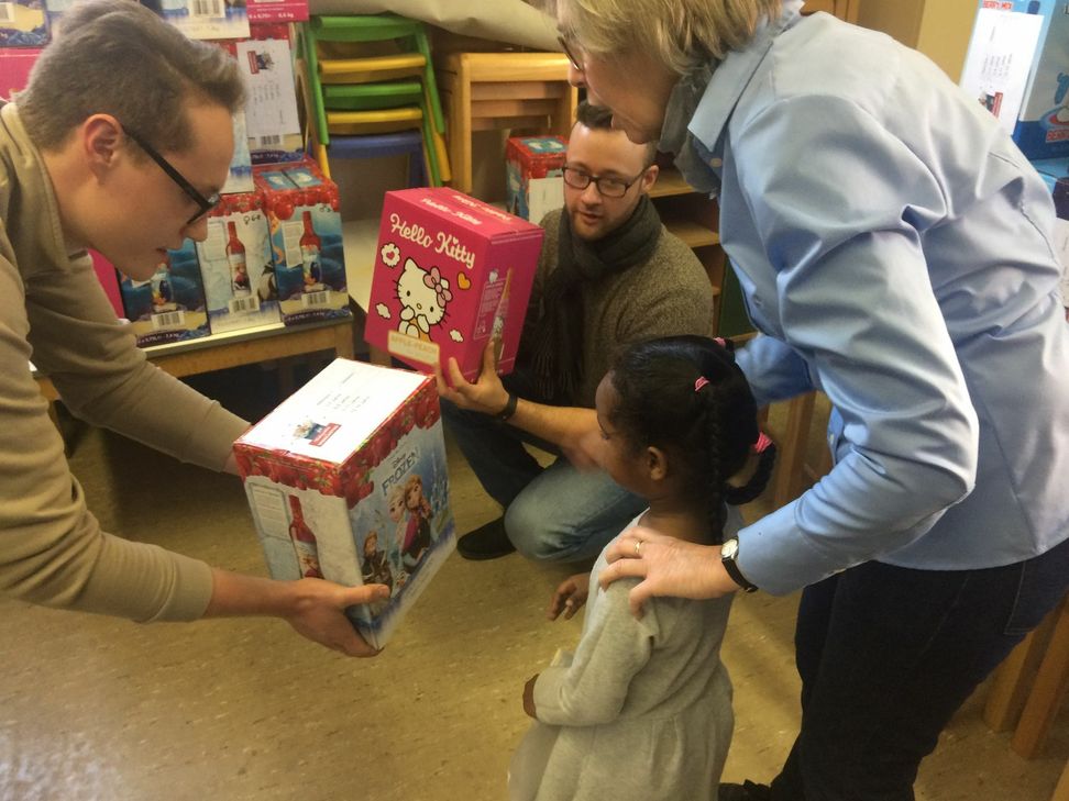 Die Azubis hatten im Betrieb einen Aufruf an die Mitarbeiter gestartet, um sie bei der Geschenkaktion zu unterstützen. Eine Bitte, die auf fruchtbaren Boden fiel. Kartons der ZGM-Kinderpartygetränke wurden - je nach Alter und Geschlecht - mit Geschenken und mit einem passenden Kindergetränk bestückt. Die Initiative war so erfolgreich, dass am Ende ein großer Transporter beladen werden musste. Im Rahmen einer Nikolausfeier konnten die Azubis jetzt in der DRK-Spielstube der Afa die Geschenke an die Kinder überreichen. Das war auf beiden Seiten Freude pur. Zum Abschied gab es noch ein Gegengeschenk. Die Kinder überreichten den jungen ZGM-Mitarbeitern ein selbstgemachtes Plakat, auf dem sie alle ihre Herkunftsländer aufgemalt hatten. Foto: privat www.zgm.de