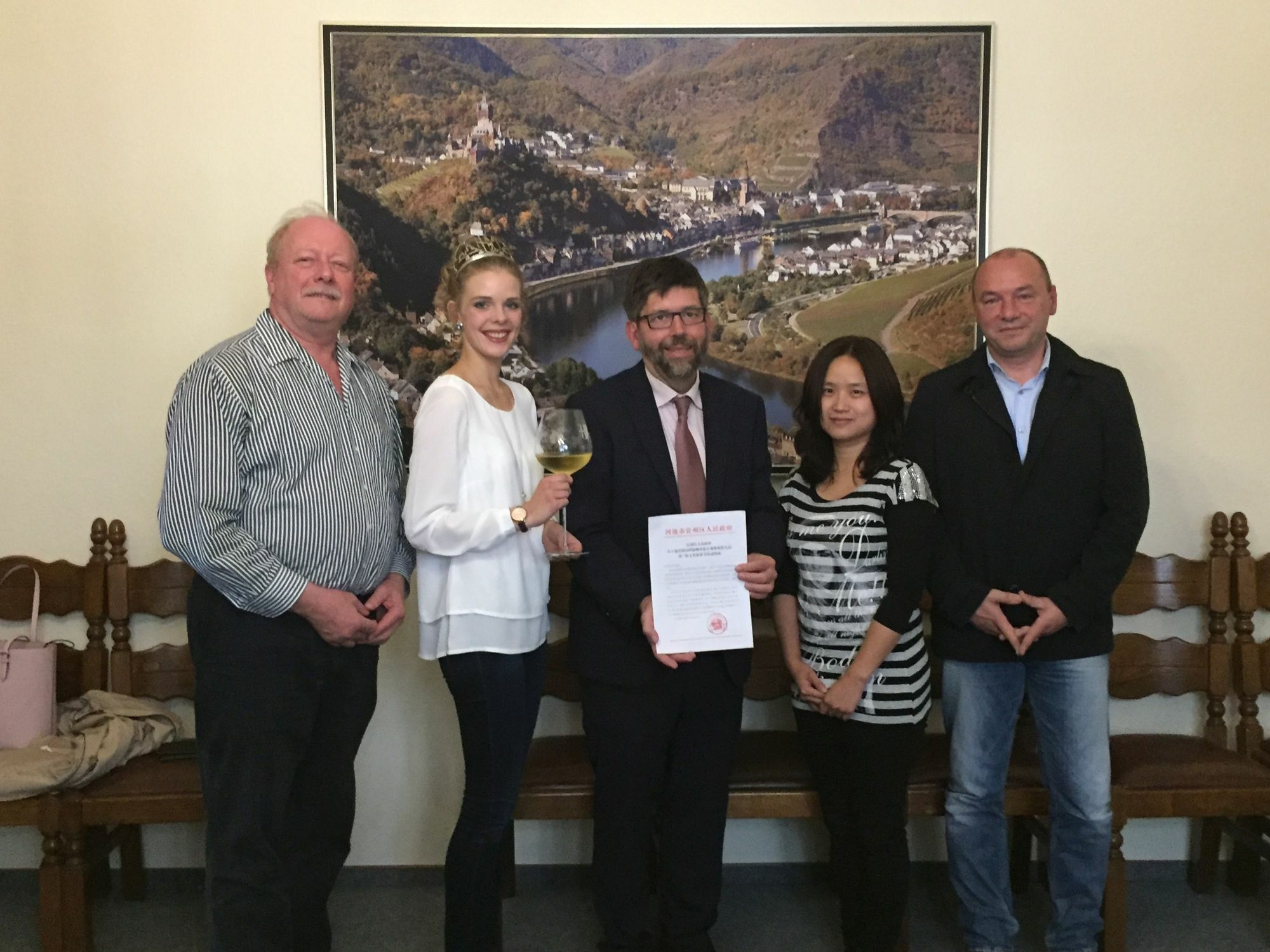 Der Cochemer Hafenmeister Markus Breitscheidel und seine chinesische Lebensgefährtin Chunlin Singh haben den Kontakt vor einigen Jahren geknüpft und den Wunsch der Chinesen nach einer Städtepartnerschaft mit in die Moselstadt gebracht. Ein Wunsch, der in Cochem gerne aufgegriffen wurde. Besonderes Interesse zeigten die Chinesen im Rahmen eines Besuchs an der Mosel am Weinbau. "Ich sehe hier große Chancen für unsere Winzer einen großen und neuen Markt für ihre Rieslingweine zu erschließen", so Chunlin Singh. Für Markus Breitscheidel hat sich gezeigt, dass die Delegation aus dem Fernen Osten enormes Interesse an der Mosel hat. "Hier besteht sicher in der Zukunft eine große Chance für den Tourismus in unserer Region. Jetzt gilt es aber, dass sich etwa Hotels oder Winzer auch auf den asiatischen Markt einstellen." Das bedeute, dass etwa auf der eigenen Webseite auch Informationen in Chinesisch zu finden sind oder sich Hotels und Restaurants auf Wünsche der asiatischen Kunden einstellen sollten. Im Moment sind Breitscheidel und seine Lebensgefährtin in China. Im Gepäck hatten sie einen Brief von Stadtbürgermeister Wolfgang Lambertz und Weinbau-Präsident Rolf Haxel. Inhalt: Die Cochemer sind von der chinesischen Administration zu einem großen Festival im April 2018 eingeladen. Das "Liu Sanjie"-Festival dauert einen Monat und an einem Wochenende soll Wein von der Mosel - analog zur Mosel-Weinwoche - angeboten werden. "Die Chinesen wollen sogar die Hütten nachbauen. Darüber hinaus müssen aber noch viele Fragen geklärt werden, vom Transport über Zollformalitäten bis zur Abrechnung, denn in China wird bereits heute großflächig bargeldlos mit dem Handy bezahlt", erklärt Lambertz, der sich über das Interesse der Winzer freut. Für Rolf Haxel bietet die Partnerschaft ebenfalls eine große Chance. "Er hat sich sehr positiv geäußert und auch die Unterstützung des Deutschen Weininstituts avisiert", so Lambertz. Neben den Weinmajestäten sollen unter anderem Vertreter der Berufsbildenden Schule und des Gymnasiums zur Delegation der Cochemer gehören, die sich im April kommenden Jahres in die rund 600.000 Einwohner zählende Stadt aufmachen soll. Und dann sollen 2018 auch viele Chinesen an die Mosel kommen, um im Karl Marx-Jahr den 200. Geburtstag des Philosophen zu feiern. Foto: privat