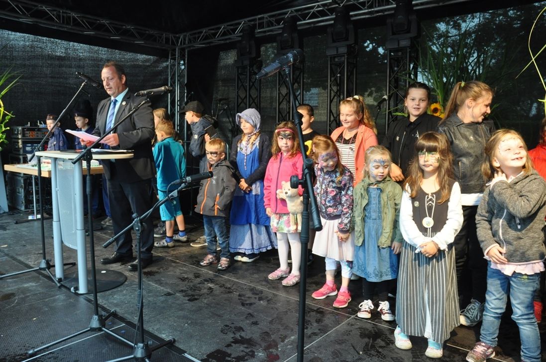 Bis zur offiziellen Eröffnung ließ Petrus die Himmelsschleusen geschlossen, aber dann goss es zeitweise in Strömen. Schade, aber die Zettinger und ihre Gäste verloren ihren Humor nicht. Da nahm der ehemalige Pfarrer Dr. Volker Malburg, der jetzt Regens in Lantershofen ist, das Wetter auf seine Kappe, denn seine neue Funktion trage den Niederschlag ja im Namen. Für den zweiten Jubiläumstag versprach er Besserung. Zudem bekam für den Schirmherren, den Parlamentarischen Staatssekretär Peter Bleser, die Aufgabenstellung eine weitere Dimension. Die Zettinger, die das bescheidene Wetter mit leckerem Jubiläumskuchen kompensierten, konnte das eh' nicht aus der Bahn werfen. Ortsbürgermeister Johannes Hammes ging in seiner Begrüßung auf die Vergangenheit, Gegenwart und die Zukunft der Gemeinde ein, die er auf der Festbühne auch zusammen mit dem Nachwuchs eindrucksvoll dokumentierte. In und um die Höfe des Ortes können die Gäste rund 100 verschiedene Aktionen, Stände und musikalische Darbietungen erleben. Zu den Höhepunkten zählen Theater- und Fimvorführungen, der Einsatz einer Dreschmaschine und nicht zuletzt Einblicke in das Leben der vergangenen Jahrzehnte. Fotos: Pauly www.zettingen.de