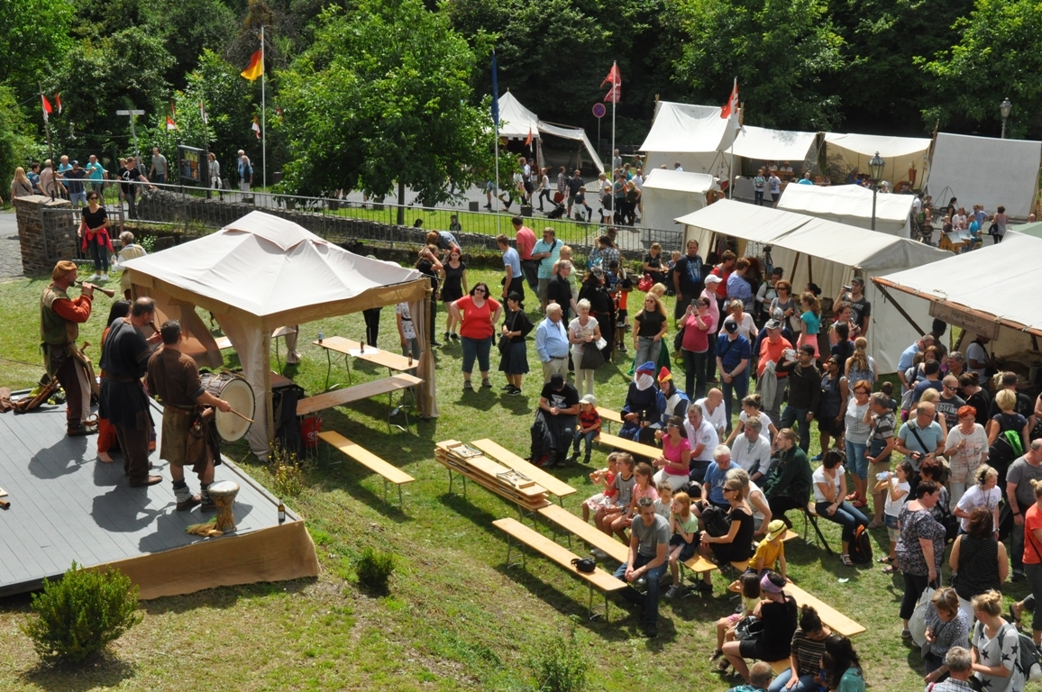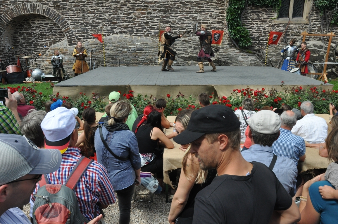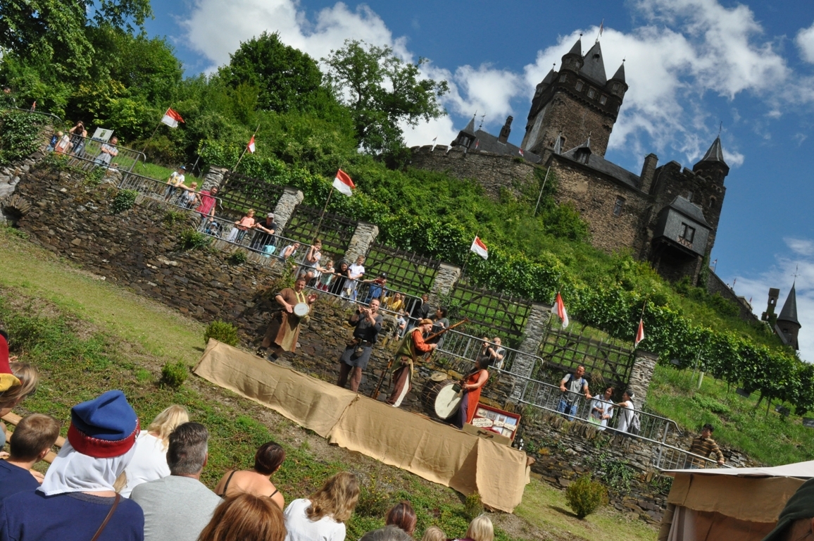 Schon der Weg zur Burg stimmte auf das mittelalterliche Fest ein. Drechsler, Lederer und Schmiede zeigten ihr handwerkliches Können und Musiker spielten auf alten Instrumenten wie Sackpfeife, Davul und Schalmei. So eingestimmt waren die Burggäste binnen weniger Augenblicke ins Mittelalter eingetaucht. Und im Burghof wartete die Fecht- und Schaukampftruppe "Fictum" mit spektakulären und unterhaltsamen Ritterkämpfen auf. Ein mittelalterliches Fest, das alle Generationen begeistert. Fotos: Pauly www.burg-cochem.de