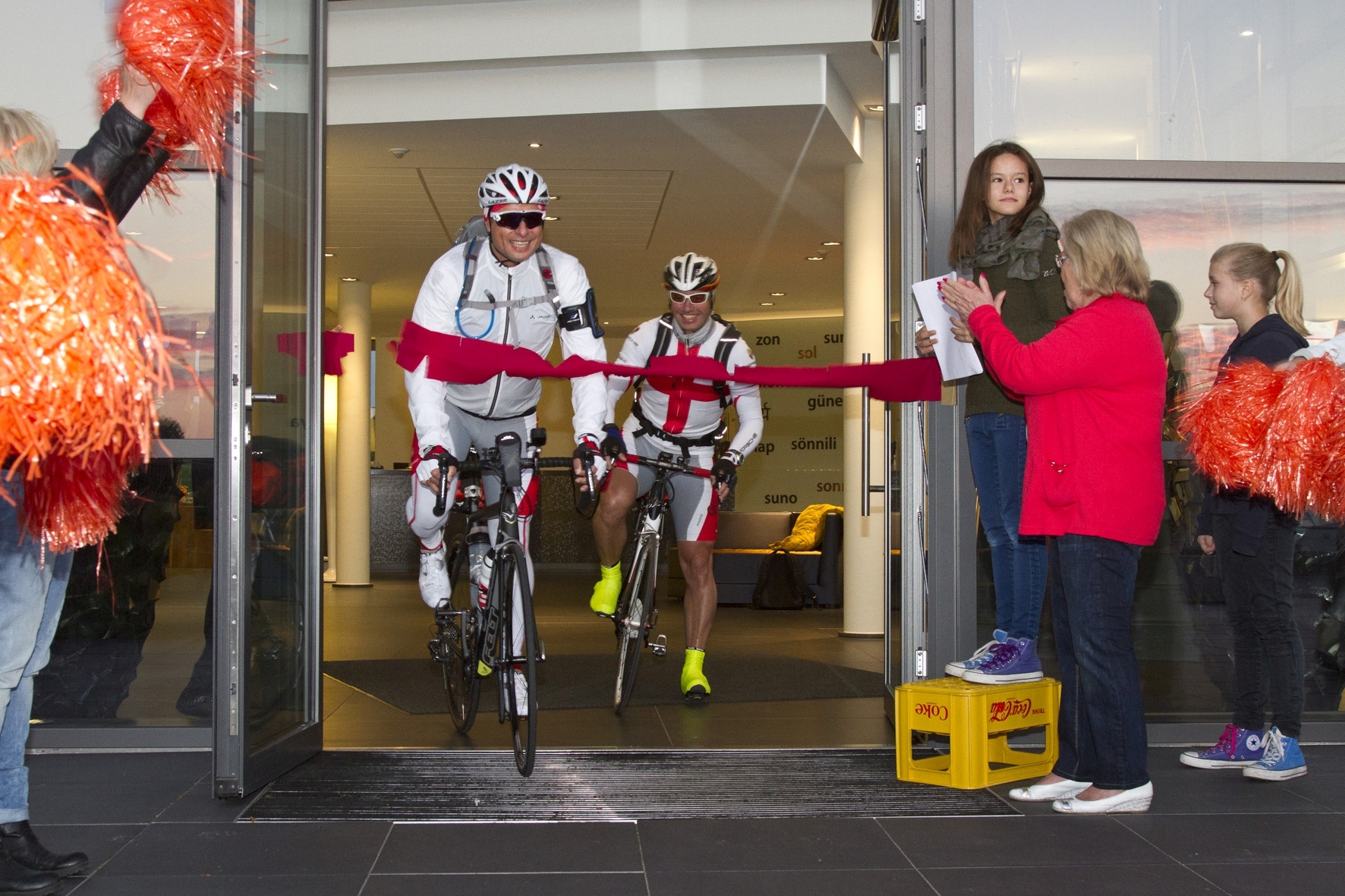 Pünktlich um sieben Uhr haben sich Jörg Frühauf, Geschäftsführer des Euskirchener Solarspezialisten „F&S solar“, und Rad-Höhenweltrekordler André Hauschke auf ihre 1600 Kilometer lange Tour bis nach Palma de Mallorca zugunsten des Kinderhospizes „Regenbogenland“ aufgemacht. Familien und Mitarbeiter von „F&S solar“ haben die beiden Extrem-Radfahrer, die sich in monatelangem Training für die Fahrt auf Tour de France-Niveau mit Berganstiegen bis auf 2000 Meter vorbereitet haben, mit guten Wünschen verabschiedet.