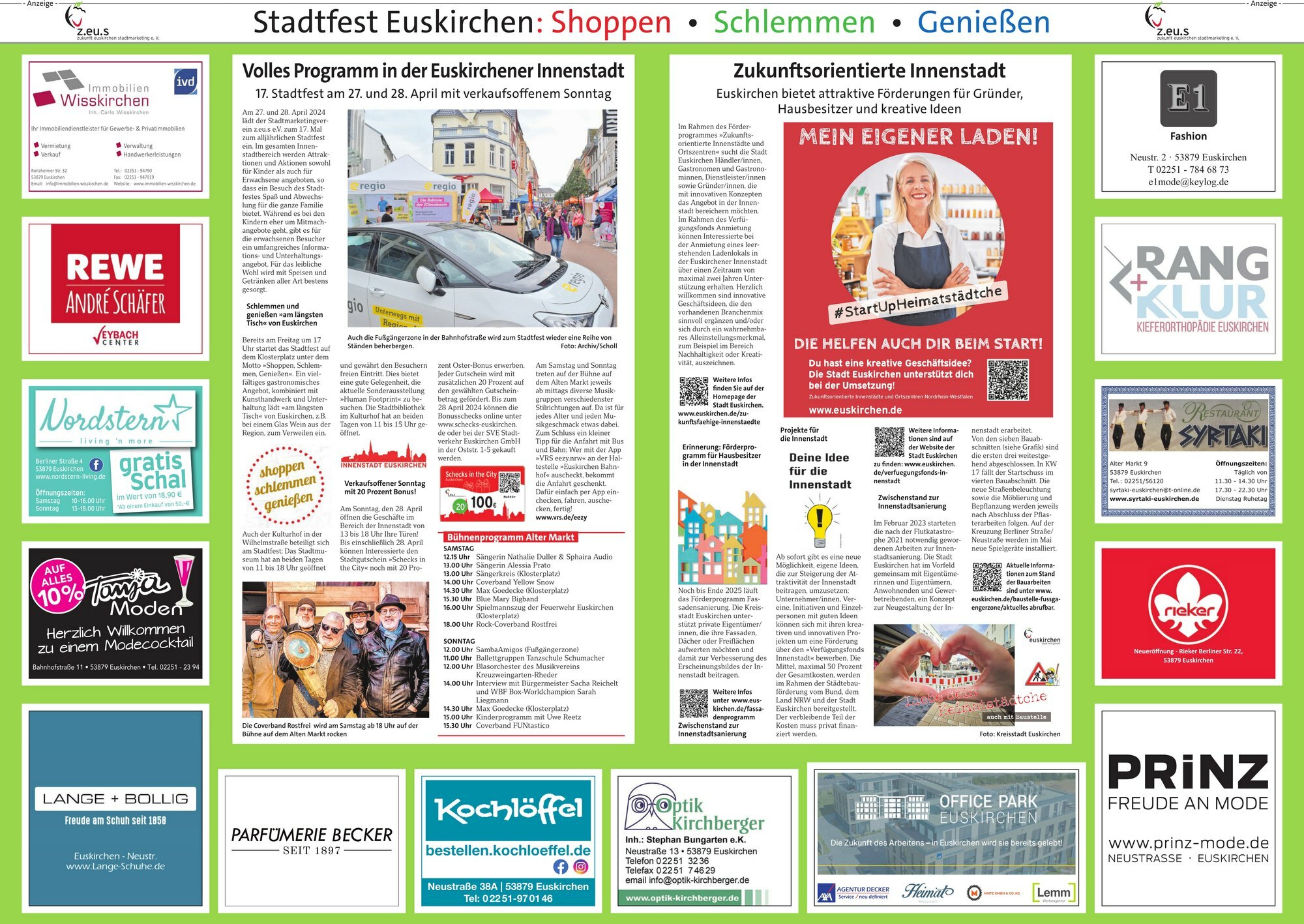 Euskirchen. Am Samstag, 27. und Sonntag 28. April findet in Euskirchen das 17. Stadtfest statt. Im gesamten Innenstadtbereich lockt ein attraktives Programm.