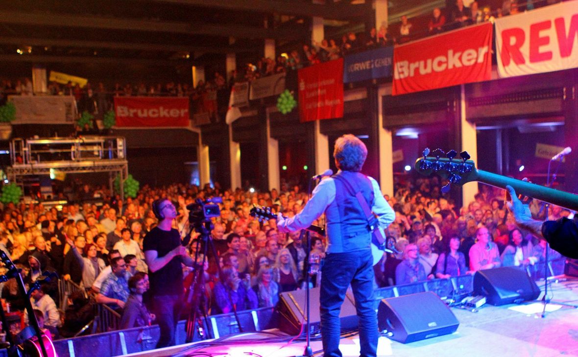 Das tat der Stimmung der Eventbesucher aber keinen Abbruch. Bereits um 17 Uhr beim Auftritt der Lokalmatadore „Männer von Flake“ war die große Halle in der ehemaligen „TonFabrik“ proppenvoll. Die Münstereifeler Rockband ließ es krachen und die Stimmung im Saal war bereits hervorragend. „Die Stimmung ist schon sensationell. Uns macht der frühe Termin richtig Spaß. So können wir uns gleich bei einem kühlen Bier die Auftritt der anderen Interpreten anschauen“, meinte „Männer von Flake“ Drummer Jürgen Schröder während einer kurzen Pause ihres Auftrittes.
