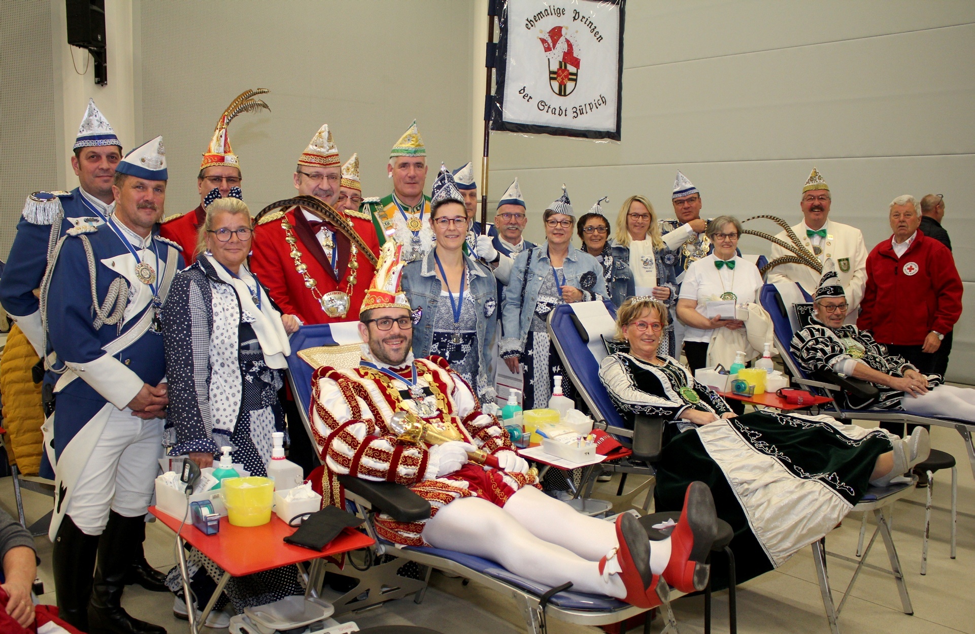 286 Menschen spendeten im Forum Zülpich Blut, darunter 16 Erstspender. Auch die heimische Tollität Stefan I. sowie das Schwerfener Prinzenpaar machten mit.
