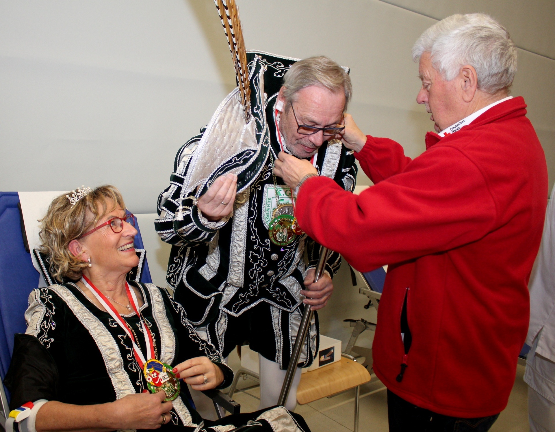 Übertrumpft wurde er nur von Schwerfens Prinzenpaar Martin I. (Rosenbaum) und Helga I. Während der Prinz zum 32.-mal „gepiekst“ wurde, war es für die Prinzessin die 52. Blutspende. Ortsvereinschef Lothar Henrich freute sich, dass die Tollitäten aus dem Außenort den Zülpicher Kollegen unterstützten: „Unser Aufruf zur Prinzenblutspende geht ja an alle Menschen im Zülpicher Stadtgebiet, soll also auch die Jecken in den Außenorten ansprechen.“
