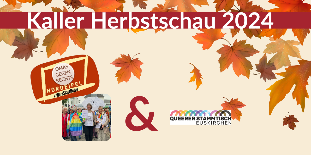 Am kommenden Sonntag, den 29. September, lädt die 37. Kaller Herbstschau wieder von 11 bis 18 Uhr in das Zentrum von Kall ein. Die beliebte Veranstaltung lockt traditionell mit einem bunten Programm, regionalen Ausstellern und vielen Infoständen – und auch dieses Jahr stehen einige Teilnehmer besonders im Fokus. Bereits zum dritten Mal in Folge werden die Omas gegen Rechts Nordeifel mit einem Infostand vertreten sein. Sie freuen sich auf viele interessierte Besucher*innen, die das Engagement für eine weltoffene Gesellschaft unterstützen möchten. In Zeiten zunehmender rechtsextremer Tendenzen und erschreckender Ergebnisse bei den jüngsten Landtagswahlen sehen die Omas gegen Rechts ihre Präsenz als wichtiger denn je an. „Gerade jetzt ist es ein Muss, für Demokratie und Vielfalt einzustehen“, betonen sie. Ihr Stand bietet Informationen und Austauschmöglichkeiten zu Themen rund um Zivilcourage und Antifaschismus – immer mit einem klaren Bekenntnis gegen Rechtsruck und Intoleranz. Auch der Queere Stammtisch Euskirchen wird, wie schon in den vergangenen Jahren, Seite an Seite mit den Omas gegen Rechts vertreten sein. Die beiden Initiativen setzen gemeinsam ein starkes Zeichen für Toleranz und gegenseitigen Respekt in der Region. Ihr Ziel: Nicht nur über gesellschaftliche Missstände aufklären, sondern auch durch ihre Präsenz Mut machen, sich aktiv für ein friedliches Miteinander einzusetzen. Die Herbstschau bietet damit nicht nur ein unterhaltsames Programm, sondern auch eine Plattform, um sich über wichtige gesellschaftspolitische Themen zu informieren. Die Omas gegen Rechts und der Queere Stammtisch freuen sich auf zahlreiche Gespräche mit den Besucher*innen und hoffen auf eine rege Beteiligung an ihren Ständen.