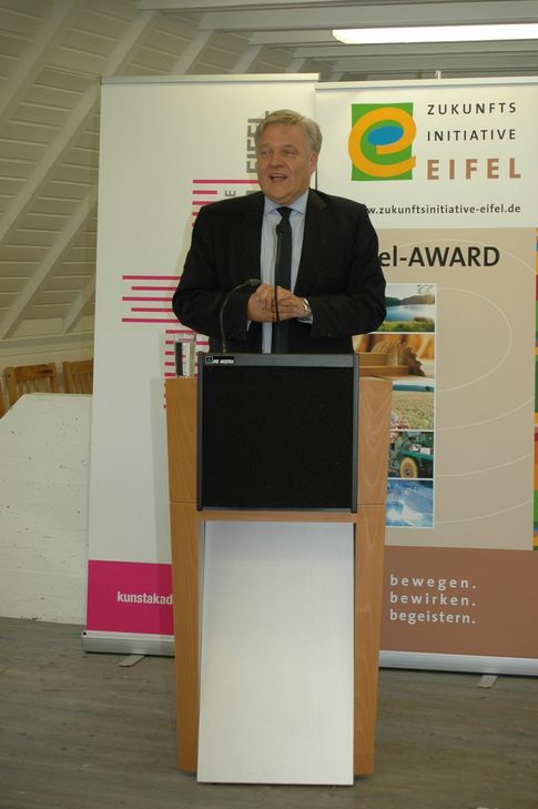Im vierten Jahr des Bestehens der Internationalen Kunstakademie Heimbach hat es Akademiedirektor Prof. Dr. Frank Günter Zehnder dank tatkräftiger Unterstützung und dauerhaftem Einsatz der über 50 Dozenten geschafft, den "Eifel-Award" in die Nationalparkstadt Heimbach zu holen. "Wir freuen uns aufrichtig über diese hohe Anerkennung. Seit der Gründung verfolgen wir das Ziel, möglichst vielen Menschen einen Weg aufzuzeigen, ihre schöpferische Kraft zu entwickeln und die Stärke künstlerischer Botschaften zu erkennen", so Zehnder. Rizzi- und Janosch-Ausstellung Die Kunstakademie hat in den vergangenen Jahren neben zahlreichen Kursangeboten vor allem durch aufsehenerregende Ausstellungen die Eifel in den Blickpunkt von Kunstinteressierten in ganz Deutschland und darüber hinaus gerückt. Im vergangenen Jahr richtete man mit Werken von James Rizzi die erste Ausstellung nach dem Tode des weltbekannten Künstlers aus. In diesem Jahr ließ man mit der Janosch-Ausstellung eine weitere, viel beachtete Werkschau des bekannten Künstlers und Kinderbuchautors folgen. Attraktivität der Eifel gesteigert "Die Akademie hat in den vergangenen Jahren erheblich dazu beigetragen, die Attraktivität der gesamten Eifel zu steigern. Durch das vielseitige Angebot hat sie nicht nur die Stadt Heimbach über die Grenzen hinaus bekannt gemacht, sondern auch für einen stetigen Tourismusaufschwung gesorgt", berichtete Helmut Etschenberg bei der Übergabe des "Eifel-Awards" in Heimbach. Mehr dazu lesen Sie in der nächsten Ausgabe des WochenSpiegels.