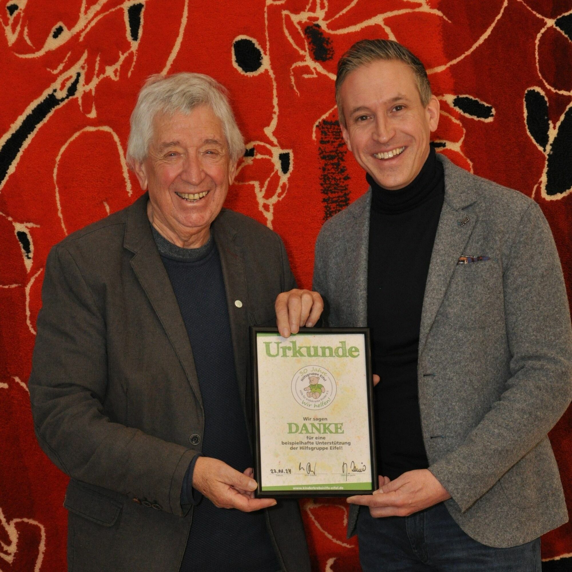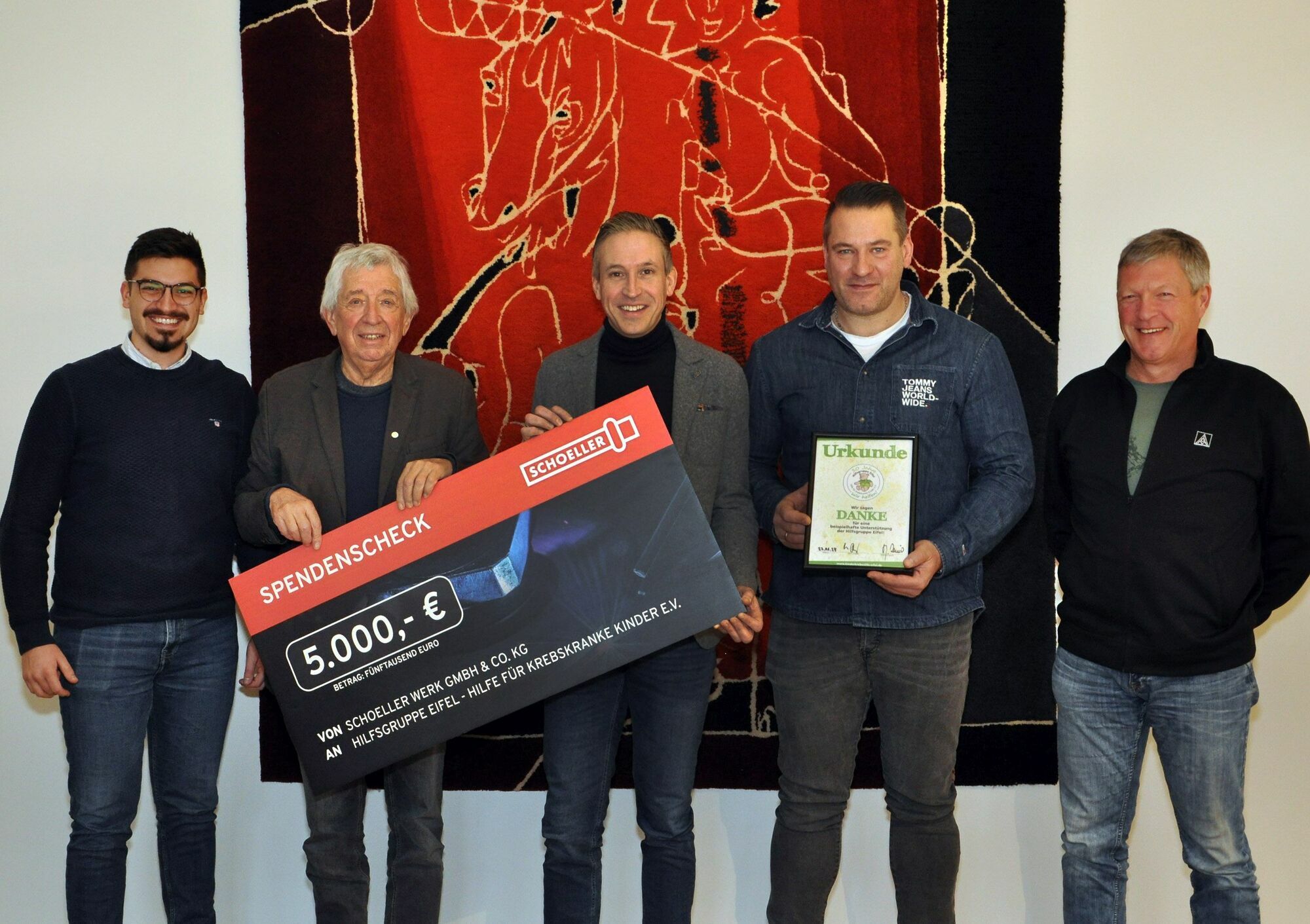Willi Greuel war von den Betriebsräten Manuel Pesch und Johannes Schmal sowie Geschäftsführer Alexander Mertens eingeladen worden, wo der Hilfsgruppe eine Spende von 5000 Euro wurde. Der Vorsitzende übergab seinerseits eine Danksurkunde an das Unternehmen.