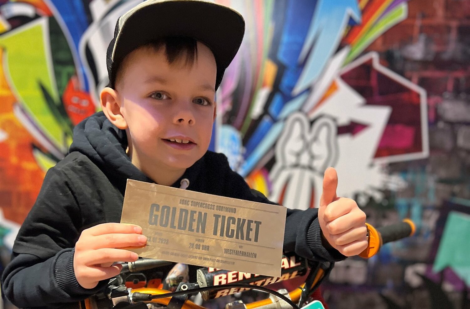 »Mama, die haben mir eine Eintrittskarte für den ADAC-Supercross in Dortmund geschickt«, freute sich der 8-jährige John Engel beim Öffnen des an ihn adressierten Briefes. Bei näherem Hinsehen wurde die Freude im Hause Engel dann aber noch größer. »Das ist keine Eintrittskarte, das ist ein Startplatz«, korrigierte Mutter Jennifer ihren Sohn. Somit darf Motocross-Nachwuchsfahrer John Engel an diesem Wochenende bei einer der größten Motocross-Veranstaltungen in Deutschland sein Können unter Beweis stellen.