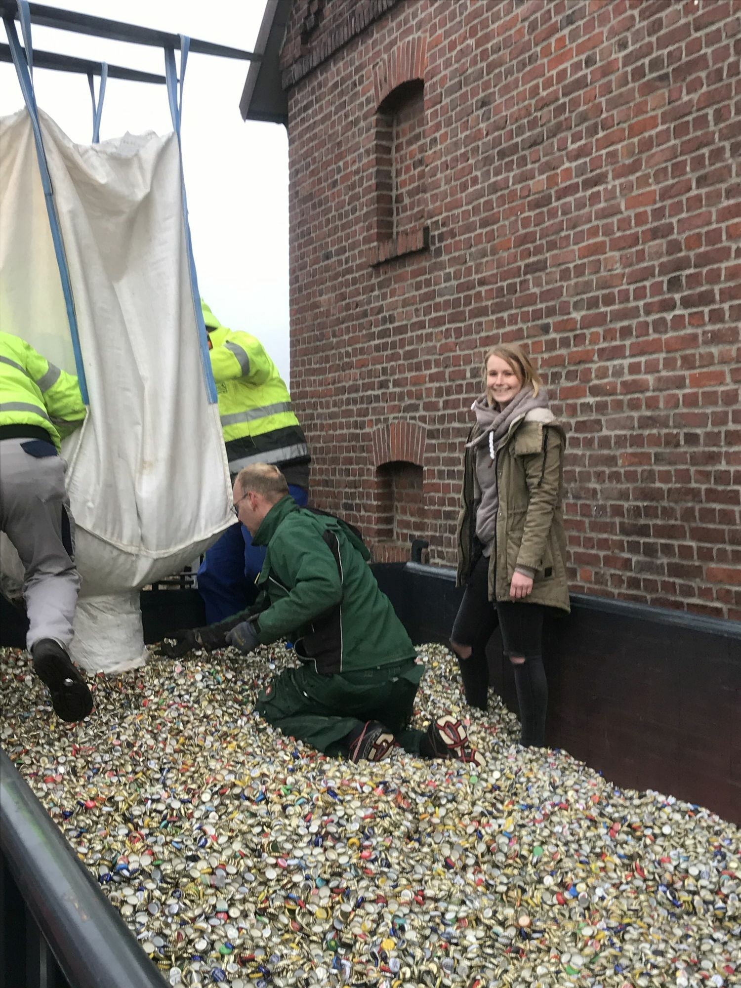 In diesem Jahr waren beim großen Entladen in Wadersloh/ Nuphusen im Münsterland auch die Rescheider mit von der Partie. Kevin Pützer: »Zu Beginn hatten wir uns das Ziel gesetzt, rund eine Tonne an Kronkorken zu sammeln.« Und dafür wurden die rund 25 Jugendlichen, die im Club 72 aktiv sind, anfangs belächelt. Denn so ein Kronkorken hat einen Durchmesser von knapp 30 Millimetern und ist gerade einmal 2 Gramm schwer. Da musste also einiges zusammen kommen, um dieses Ziel zu erreichen. »Am Ende«, freut sich Kevin Pützer, »haben wir uns Anfang des Jahres mit 1,7 Tonnen, also rund 850.000 Kronkorken auf den Weg ins Münsterland gemacht.«