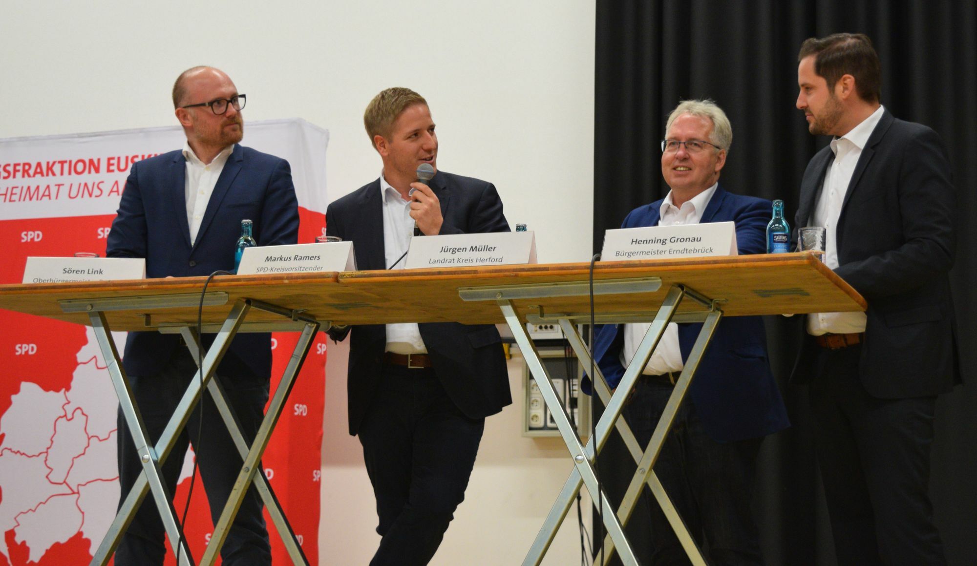 "Das ist ein starkes Ergebnis", freute sich Markus Ramers nach Bekanntgabe des Wahlergebnisses. "Dieser Rückhalt zeigt, dass wir geschlossen aufgestellt sind", so der Kandidat weiter. Als Gäste begrüßte Ramers unter anderem Sören Link (Oberbürgermeister der Stadt Duisburg), Henning Gronau (Bürgermeister von Erndtebrück bei Siegen) und Jürgen Müller (Landrat des Kreises Herford), die sich an einer Gesprächsrunde beteiligten. Ramers ist seit 2005 Mitglied der SPD. Im Kreistag Euskirchen ist er seit 2009 Mitglied. Er gehört dem Gemeinderat Blankenheim an. Zum Vorsitzenden der Kreis SPD wurde er 2013 gewählt. Seit 2014 ist er zudem stellvertretender Landrat des Kreises Euskirchen. Beruflich ist Markus Ramers als Lehrer am St. Michael-Gymnasium Bad Münstereifel tätig und unterrichtet dort die Fächer Mathematik und Geschichte. Seine Kandidatur für das Amt des Landrats hatte er bereits im Mai 2019 angekündigt.