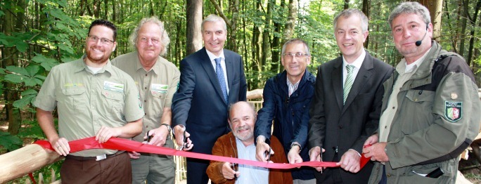 Jetzt kam ein weiteres hinzu: NRW-Umweltminister Johannes Remmel eröffnete »Den Wilden Weg« ? einen 1.500 Meter langer Naturerkundungspfad mit zehn interaktiven Erlebnisstationen. »Unser Land hat eine einzigartige faszinierende und pulsierende Natur, ein Hort für Tausende von Tier- und Pflanzenarten ? ein Schatz direkt vor unserer Tür«, erklärte Minister Remmel. »Mit seiner Philosophie ?Natur Natur sein lassen' leistet der Nationalpark Eifel hierzu einen wichtigen Beitrag. Der ?Wilde Weg' macht die Bedeutung des Nationalparks und die Wälder mit ihrer Tier- und Pflanzenwelt auf faszinierende und beeindruckende Art und Weise erlebbar. Es freut mich und es ist vorbildlich, dass bei der Entwicklung so konsequent die Belange von Menschen mit und ohne Behinderung berücksichtigt worden sind«, hob Remmel hervor. An zehn interaktiven Stationen können sich Besucher über Wildnis, Waldentwicklung und die Tier- und Pflanzenwelt im Nationalpark informieren. Zudem erfahren sie, wie sich Stürme auf einen Wald auswirken, können auf einer Kletterstrecke ihre Kräfte messen oder sich in einer Forscherstation wie ein Wissenschaftler fühlen. Ein 210 Meter langer Holzsteg durch die Waldwildnis ermöglicht ganz besondere Perspektiven und Einblicke in die Natur. So können sich die Besucher in einem begehbaren Tunnel über verschiedene Tierarten und deren Nutzung des Alt- und Totholzes informieren. Lebensgroße Stahlsilhouetten von Tieren zeigen an anderer Stelle exemplarisch, wie diese sich auf die Waldentwicklung auswirken können. »Wir sind froh, dass der Nationalpark Eifel und die Region so umfassend auf unsere Bedürfnisse eingeht und so tolle Angebote schafft«, lobte der Reisefachmann im Rollstuhl Johann Kreiter. »Damit hat sich unsere Region deutschlandweit ein absolutes Alleinstellungsmerkmal geschaffen«, freut sich auch der Bürgermeister der Nationalparkstadt Schleiden, Udo Meister. Der »Wilde Weg« ist die zweite Ausbaustufe des im Mai 2011 eröffneten Barrierefreien Naturerlebnisraumes Wilder Kermeter.
