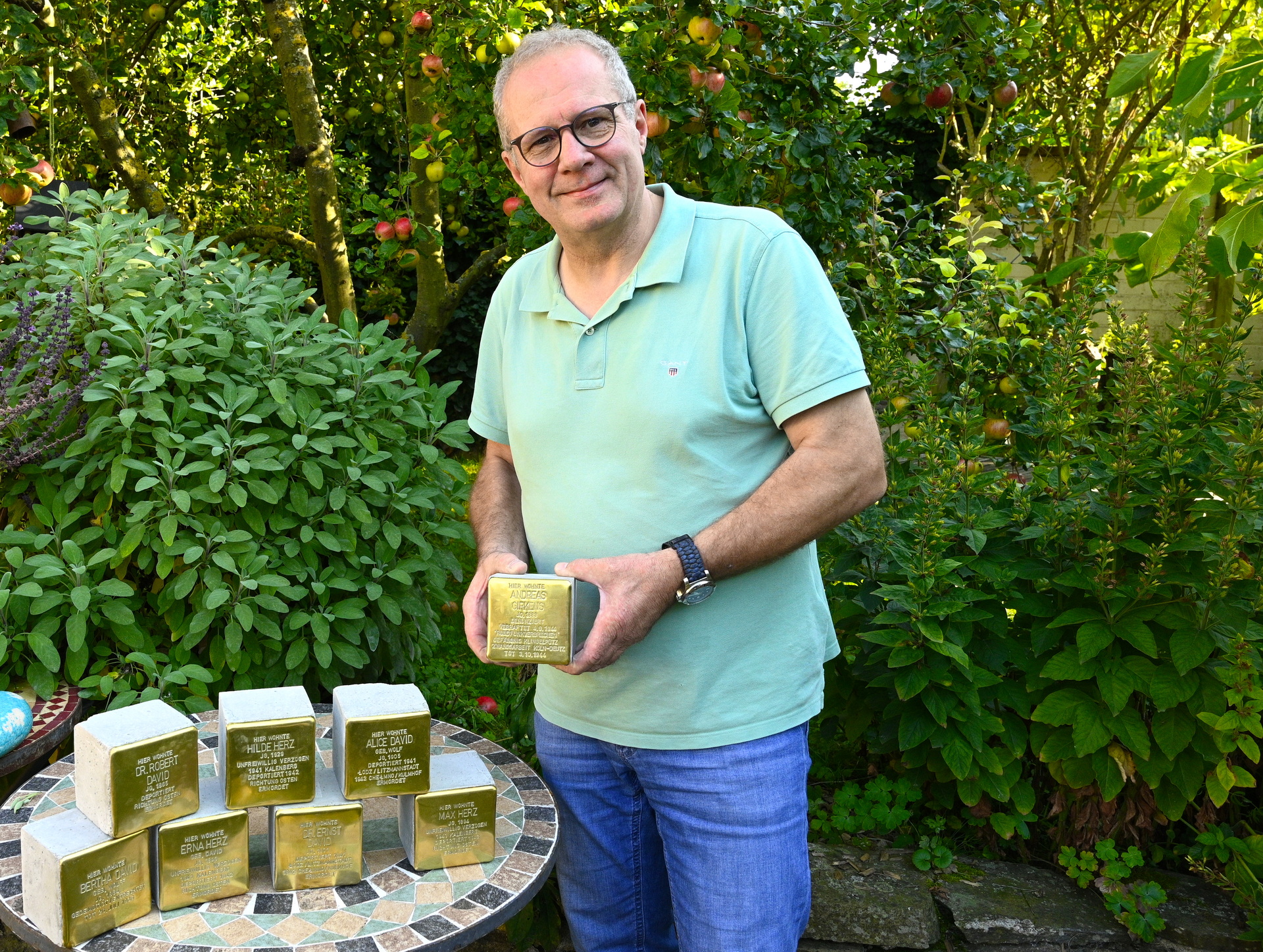 Dieses Haus hat einst Bäckermeister Andreas Girkens gehört. Auf der Bahnstraße waren er und die Familien von Dr. Robert David und seinem Sohn Dr. Ernst David Nachbarn und Freunde. Girkens, der von den örtlichen Nazis als »Judenfreund« bezeichnet wurde, kostete diese Freundschaft das Leben. Er wurde in Köln im Polizeigefängnis ermordet. 80 Jahre nach seinem Tod wird für ihn ein Stolperstein gesetzt. Dr. Robert David hatte auf der Bahnstraße eine ärztliche Praxis und war der »beliebte Mechernicher Hausarzt«. Sein Sohn Dr. Ernst David war Zahnarzt. Auch für sie und ihre Frauen Bertha und Alice werden an diesem Tag Stolpersteine verlegt.