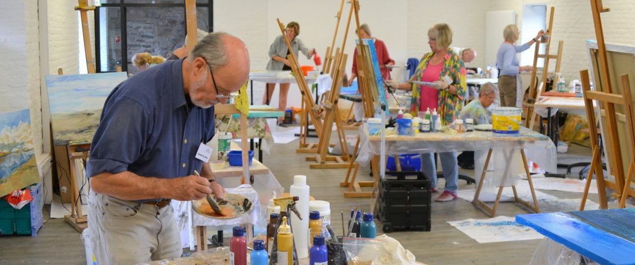 Vor drei Jahren wurde am 22. August 2009 die Internationale Kunstakademie Heimbach auf der Burg Hengebach eingeweiht und eröffnet. Seither haben Tausende von Kunstinteressierten und Studierenden die Kunstakademie besucht und das reiche Kursangebot in den modern ausgestatteten Ateliers wahrgenommen. Die Teilnehmerinnen und Teilnehmer kommen aus allen deutschen Bundesländern sowie aus den Anrainerstaaten, sie schätzen die herrliche Landschaft, finden hier Ruhe für konzentriertes künstlerisches Arbeiten und sind von der international orientierten Arbeit begeistert. Die Bemerkung einer erfahrenen Malerin - "Ich kenne keine Kunstakademie in Deutschland, die schöner liegt und in der man so konzentriert und gelassen arbeiten kann wie in Heimbach" - steht für viele ähnliche Äußerungen. Die Internationale Kunstakademie Heimbach hat in den wenigen Jahren mit Konzept, Ort, Dozenten-Crew und Betreuung ein viel beachtetes klares Profil gewonnen. Das soll auch dieses Jahr wieder gefeiert werden. Programm: 11 Uhr: Führung durch die Ausstellung "Herb Schiffer. Gemälde" Herb Schiffer wurde der Kunstpreis des Kreises Düren 2011 für sein bisheriges Lebenswerk verliehen. Ihm sind die Ausstellung und der Katalog gewidmet. (Eintritt und Führung durch Prof. Dr. Frank Günter Zehnder frei) 14 Uhr: Führung durch die Ateliers Das ist eine gute Gelegenheit zur Besichtigung der zahlreichen Ateliers, die sonst nur den Kursteilnehmern und Dozenten vorbehalten sind. Beim Rundgang durch alle Räume erfahren Sie etwas zum Bau, zu den Funktionen und zur Ausstattung. (Kostenlos) 14 bis 14:30 Uhr: Trompetenmusik von der Burg Ein Trompeten-Quartett unter der Leitung von Renold Quade lässt seine Töne vom Wehrgang aus über die Stadt schweben. 14 bis 17 Uhr: Kreativ sein und Spielen (mit Betreuern) Eigens für die jüngeren und kleinen Gäste stehen viele Spielangebote zur Verfügung. Erfahrene Betreuer werden Anleitungen geben und dafür sorgen, dass Spaß, Geschicklichkeit und Kreativität zu ihrem Recht kommen. (Natürlich kostenlos) 15 bis 17 Uhr: Workshops in unterschiedlichen künstlerischen Bereichen Diese Workshops bieten eine sehr gute Möglichkeit, einmal in eine Kunstgattung hinein zu "schnuppern" und dabei herauszufinden, ob die Technik einem liegt und man darin kreativ sein möchte. Die Workshops werden von zwei Dozentinnen und einem Dozent geleitet, die schon seit 2009 an unserer Kunstakademie lehren. (Kostenbeitrag: jeweils 20,- €. Der Betrag wird bei der späteren Buchung eines regulären Kurses voll verrechnet. Eine Anmeldung ist erforderlich unter Telefon 02446/809700 oder info@kunstakademie-heimbach.de) Druckgrafik mit Beatrix von Bock Die sehr erfahrene Künstlerin und Dozentin wird Sie in die Geheimnisse des künstlerischen Druckens einführen und mit Ihnen ganz praktisch arbeiten. Sie werden in der kurzen Zeit schon ein Gefühl für die vielen Möglichkeiten entwickeln, die Fantasie, Materialien und Technik für ein gelungenes Bild bieten. Druckgrafik ist ein Feld beinahe unendlicher Ausdrucksmöglichkeiten. Es werden keine Kenntnisse oder Erfahrungen vorausgesetzt. (Keine Altersbeschränkungen) Malerei mit Maf Räderscheidt "Rein oder Raus?" fragt die Dozentin. Bei gutem Wetter genießen Sie die schöne Landschaft draußen mit Staffelei, Malbrett, Farbe, Pinseln und Stiften. Bei schlechtem Wetter ist der Experimentierfreude im Mal-Atelier fast keine Grenze gesetzt. Malerei ist eine Kunst, die es jedem ermöglicht, Gesehenes oder Erträumtes, Gedanken oder Gefühle auszudrücken. Man glaubt gar nicht, wie schnell man darin eine eigene Handschrift entwickeln kann. (Keine Altersbeschränkungen) Fotografie mit Hans Helle Zwischen einfachem Fotografieren und Fotokunst liegen erfahrungsgemäß Welten. Aber man kann den anspruchsvolleren Teil dieser Technik systematisch erlernen, wenn man die Augen öffnet, den Blick richtet, den Ausschnitt wählt, den Moment erwischt, mit dem Licht arbeitet und vieles mehr beachtet. Hier können Sie den Anfang machen: Sie fotografieren gemeinsam ein Motiv, anschließend erklärt Ihnen der Dozent, wie das Bild künstlerisch weiterbearbeitet werden kann. Sie werden staunen. (Bitte Digitalkamera, egal welches Modell, und falls vorhanden Laptop, Notebook oder Tablett mitbringen ? Keine Altersbeschränkungen.) 17 Uhr Finissage der Ausstellung "Herb Schiffer. Gemälde" Der Künstler und Dozent Herb Schiffer wird anwesend sein und Plakate bzw. Katalog gerne signieren. 18 Uhr Filmvorführung "Himmel un Ähd" Der Film zeigt eine sensibel und mit wunderschönen Bildern erfasste Familiengeschichte aus der Eifel, sprich: aus Heimbach. Dieser Dokumentarfilm von Bärbel Kosanke aus Berlin wurde bereits mehrfach vor vollem Haus in der Kunstakademie aufgeführt. Auf vielfachen Wunsch wiederholen wir die Vorstellung. (Der Eintritt ist frei. Bitte reservieren Sie sich frühzeitig telefonisch oder am Empfang Ihre Eintrittskarte. Es gibt nur beschränkt Sitzplätze.) Das Burgrestaurant & Cafe "kochKunst" ist ab 12 Uhr geöffnet. Kontakt: Internationale Kunstakademie Heimbach/Eifel Hengebachstraße 48 52396 Heimbach Telefon: 02446 ? 80 97 00 Telefax 02446 ? 80 97 030 info@kunstakademie-heimbach.de www.kunstakademie-heimbach.de
