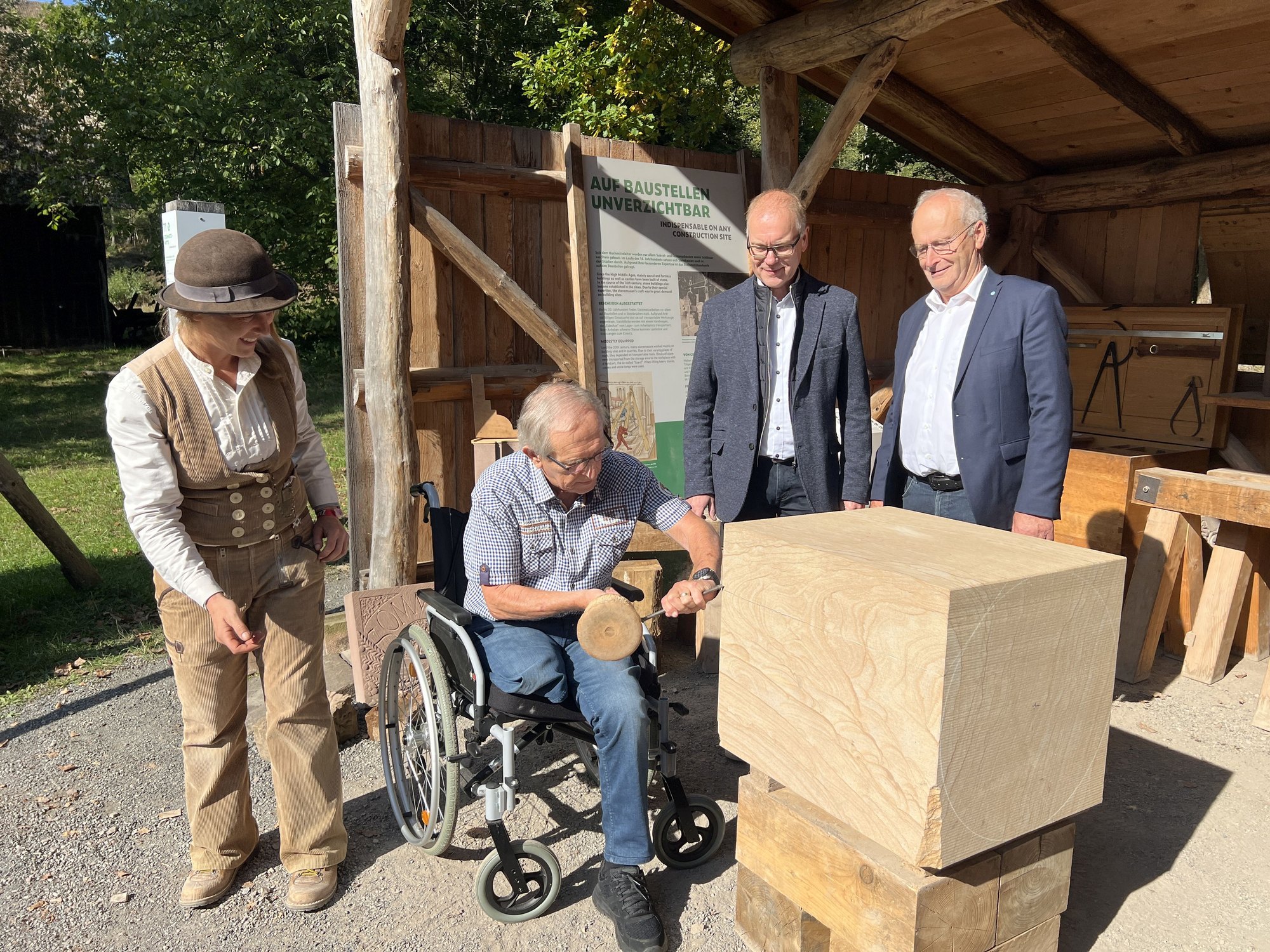 Verantwortlich für die Umsetzung ist Ulrike Glaubitz, Steinmetzmeisterin und Vorführhandwerkerin des Freilichtmuseums. Mit sichtbarer Begeisterung erklärte sie ihr Vorgehen: »Ich freue mich sehr, Teil dieses Projektes zu sein. Es ist für mich eine Ehre, Geschichte nicht nur zu bewahren, sondern auch wieder sichtbar zu machen. Wir schenken Kommern ein Stück seiner Vergangenheit zurück.«