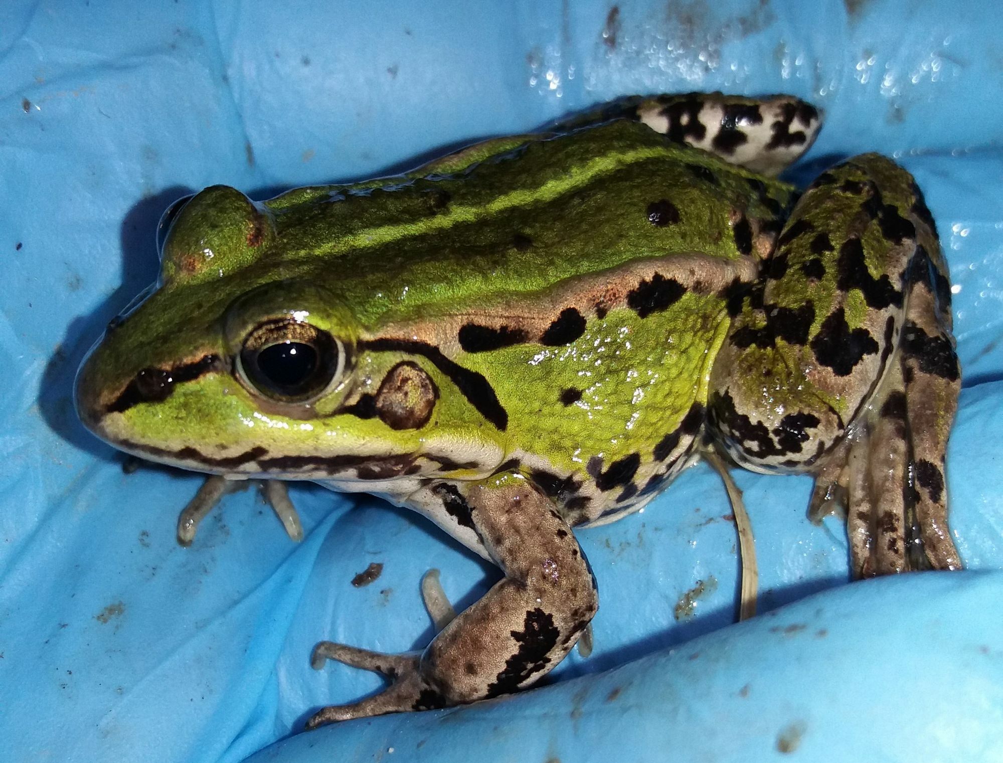 Nicht nur Kröten, sondern auch andere Amphibien wie dieser Teichfrosch sind unterwegs zu ihren Laichgewässern. Foto: Ulrich Pohl/NABU Euskirchen