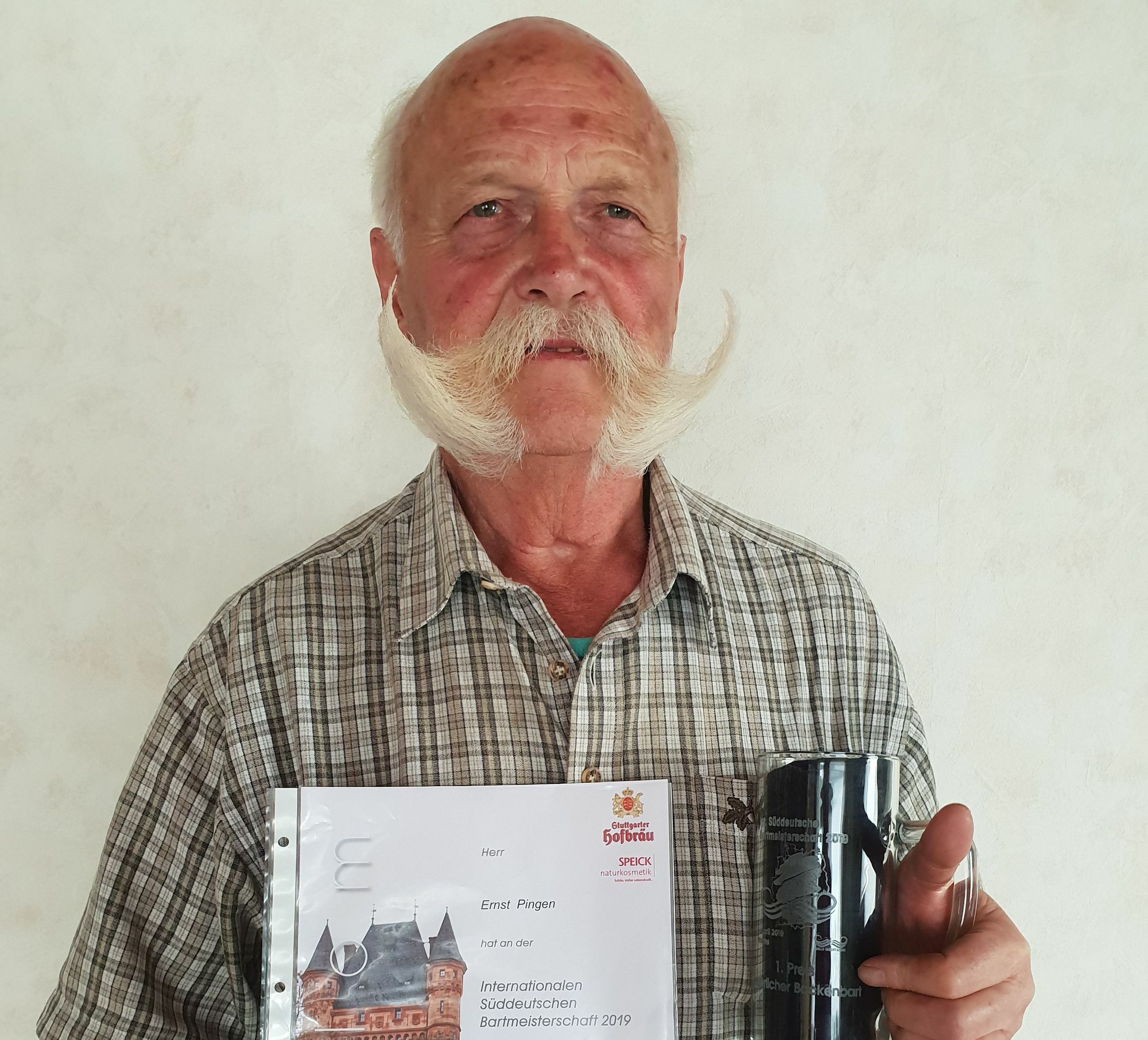 Ernst Pingen aus Kommern ist nicht nur Mitglied in der St. Sebastianus Schützenbruderschaft, er fällt auch durch seine besondere Bartpracht auf. Seit mehr als 30 Jahren hegt und pflegt er seinen Bart als besonderes Markenzeichen und kam dabei schon zu mancherlei Ehre. In der Kategorie »Kaiserlicher Backenbart« - der Namensgeber ist der ehemalige Kaiser Franz-Josef von Österreich - hat Ernst Pingen schon einige nationale sowie internationale Erfolge feiern können. So belegte er bei der Weltmeisterschaft 2014 in St. Leogang/Zell am See in Österreich einen hervorragenden fünften. Bei den Internationalen Meisterschaften in Schönberg, Zollernalbkreis belegt er 2016 den zweiten Platz. Vor kurzem wurden die Internationalen Süddeutschen Meisterschaften der Bartträger in Worms ausgetragen. Dort gewann Ernst Pingen mit 67 von insgesamt 70 zu erreichenden Punkten den ersten Platz und darf sich nun Internationaler Süddeutscher Meister in der Kategorie »Kaiserlicher Backenbart« nennen. Die Punkte wurden von einer Jury vergeben, die sich nicht scheute, mit dem Zentimetermaß an die Bärte zu gehen. Übrigens: Die Weltmeisterschaften der Bart und Schnäuzer Träger werden im Mai 2019 in Antwerpen ausgetragen. Dort werden Bart-Enthusiasten aus allen Kontinenten der Erde teilnehmen und um den Titel eines Weltmeisters kämpfen.