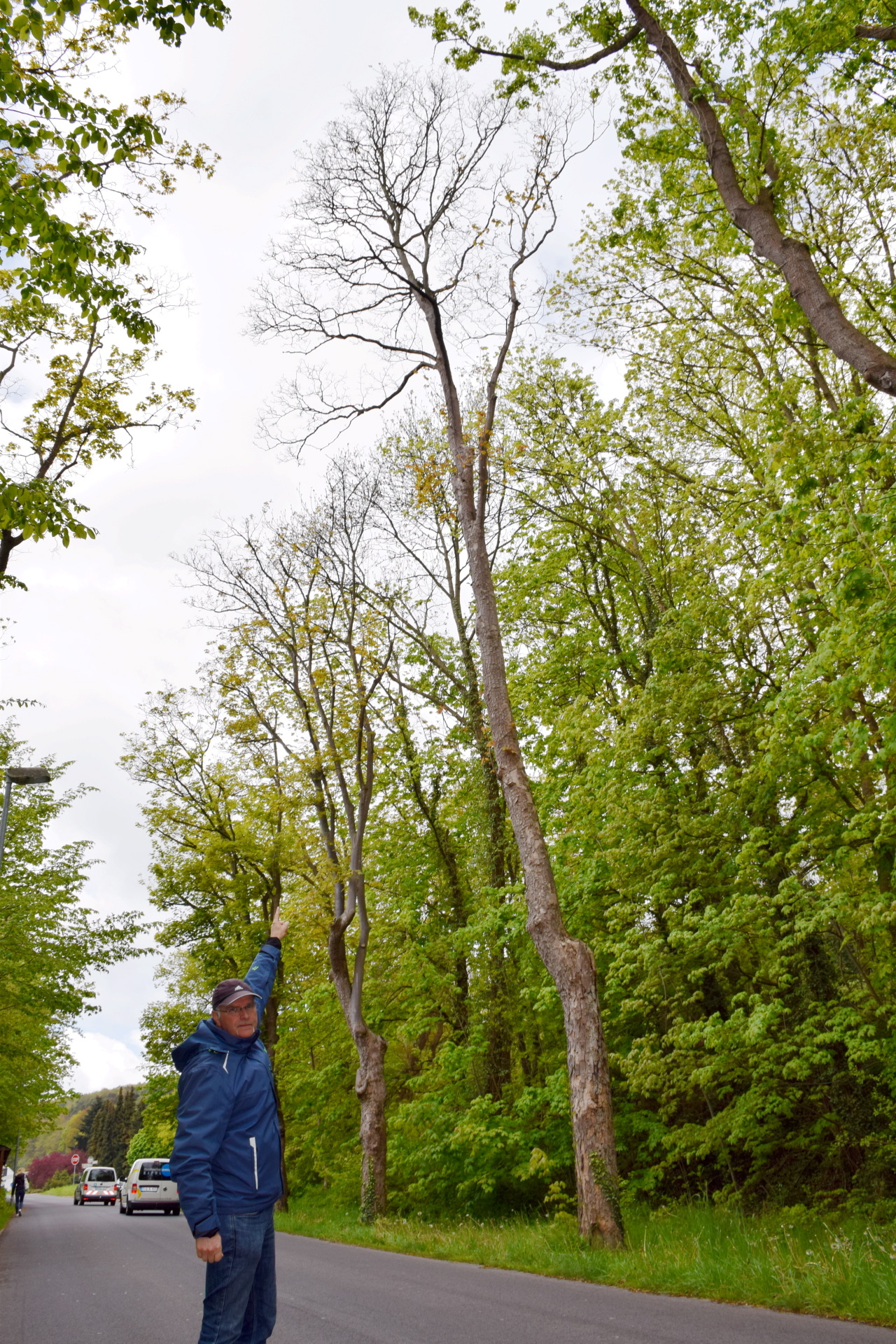 Sechs der Birken am vielbefahrenen Mechernicher Weg stehen nicht gut da. »Drei haben schon gar nicht mehr ausgetrieben«, stellt Christof Marx, Landschaftsarchitekt der Stadt Mechernich, während der Begutachtung fest. Die abgestorbenen Bäume am Wegesrand stellen eine potentielle Gefahr dar, auch für die Verkehrsteilnehmer. Schon beim nächsten Wind könnten die Bäume umkippen. Deshalb mussten sie umgehend gefällt werden. Die Stadt muss der Verkehrssicherungspflicht nachkommen.