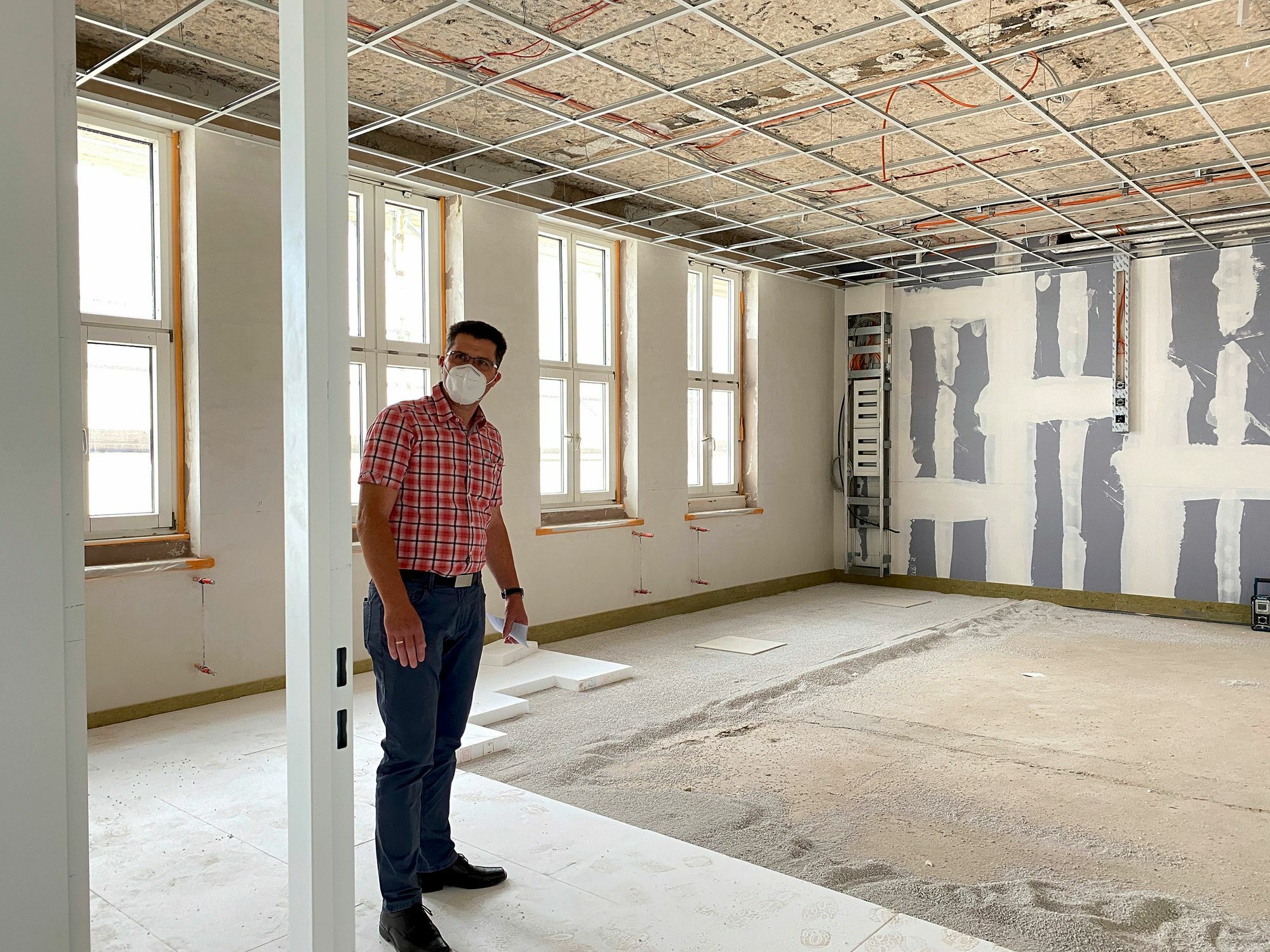 Nachdem die Rohbau- und Vorinstallationsarbeiten abgeschlossen sind, wird derzeit mit Hochdruck am Innenausbau gearbeitet. Mitte August wurde mit den Trockenestricharbeiten begonnen. Eigentlich war beabsichtigt, Zementestrich einzubauen. Diese Absicht führte jedoch zu statischen Problemen und damit zu einer Verzögerung im Bauablauf, die die Fertigstellung des ersten Bauabschnitts um rund zwei Monate verzögert. Laut Armin Fischbach, Teamleiter Grundstücks- und Gebäudemanagement bei der Stadt Schleiden wird mit der Endmontage von Akustikdecken, Maler- und Bodenbelagsarbeiten begonnen, sobald eine komplette Etage mit dem Trockenestrichbau fertiggestellt ist. „Wir werden die Verzögerung so gering wie möglich halten. Deswegen haben wir bereits die Mediensäulen, die digitalen Tafelsysteme und die Möblierung für die neuen Klassenräume und die offenen Lernbereiche auf Abruf bestellt“, so der Erste Beigeordnete Marcel Wolter. So können die Räume zeitnah nach den Maler- und Bodenbelagsarbeiten eingerichtet und nach den Herbstferien 2020 von den Schülerinnen und Schülern bezogen werden. Für den zweiten und dritten Bauabschnitt laufen zurzeit die Ausschreibungen für die Abbruch-, Erd-, Mauer- und Betonarbeiten. Die Aufträge hierzu werden voraussichtlich Ende des Jahres vergeben.
