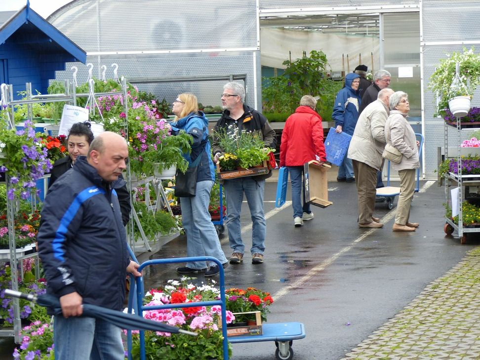 Trotz des eher durchwachsenen Wetters fanden hunderte von Besuchern den Weg in das Kuchenheimer Gewerbegebiet uns sorgten dafür, dass über 2.000 Sommerblumen, selbstgezogen von den Mitarbeitern mit Behinderung der Kuchenheimer Betriebstätte der NEW, aus dem Gewächshaus verschwunden waren und jetzt Gärten, Terrassen und Balkone der zahlreichen Kunden zieren. Neben den Blumen präsentierten die Mitarbeiter der Nordeifelwerkstätten ein erweitertes Angebot an hochwertigen kunsthandwerklichen Geschenkideen, die kurz vor Vater- und Muttertag genauso so reißenden Absatz fanden wie die Bonbons der NEW Bonbonmanufaktur in den Nordeifelwerkstätten in Kall. Insgesamt arbeiten über 320 Menschen mit einer psychischen Erkrankung in der NEW Kuchenheim in zehn verschiedenen Arbeitsfeldern. Am nächsten Samstag, 7. Mai, findet erstmalig „Blumen & Mehr“ in den NEW Kall, Simensring 23, im Gewerbegebiet Kall statt. Mehr Informationen unter www.nordeifelwerkstaetten.de