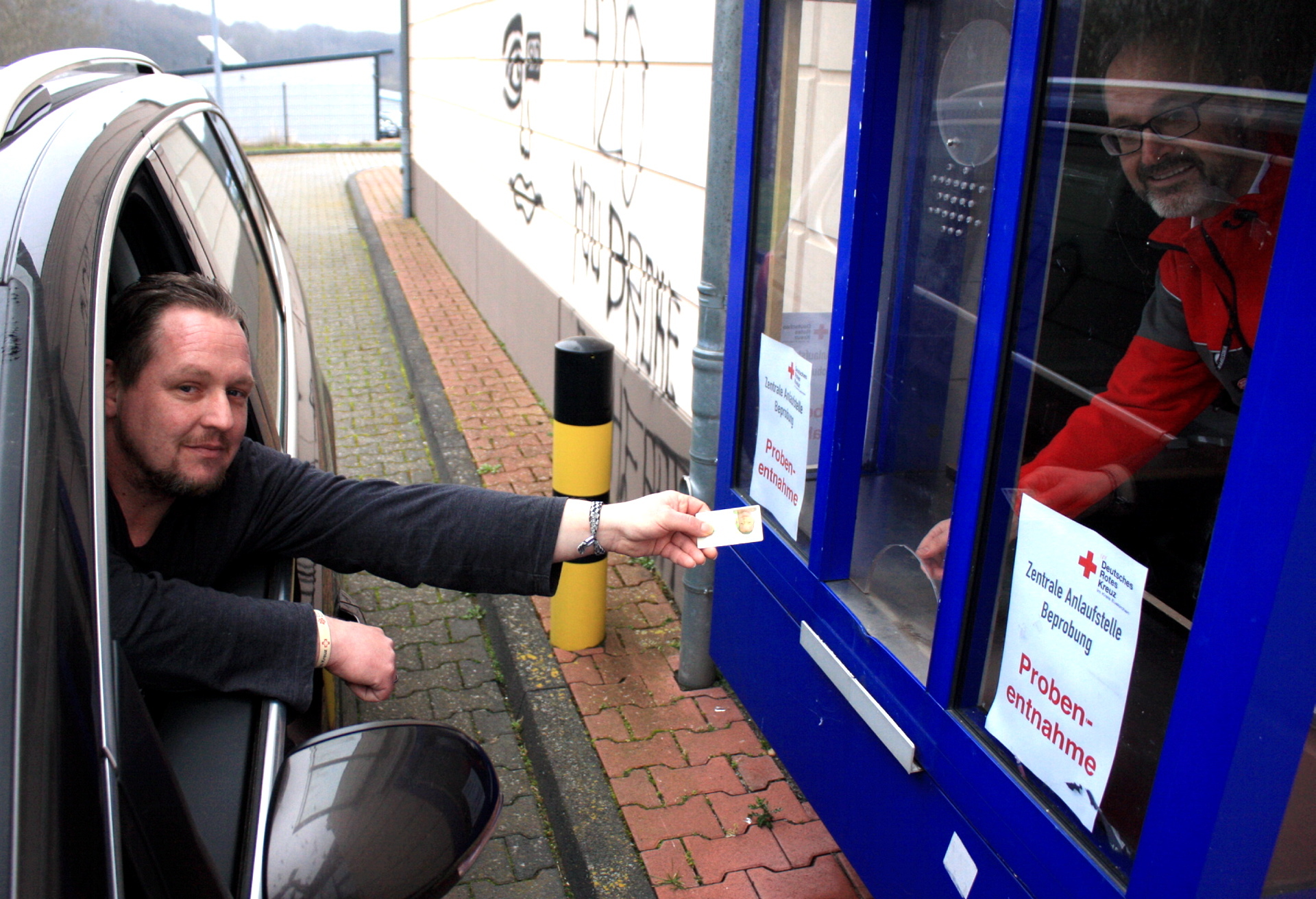 Dazu erhält der Patient ein Röhrchen mit Teststäbchen und kann sich die Probe selbst nach Anweisung an der Mundschleimhaut entnehmen. Das Röhrchen wird anschließend am Drive-In-Schalter an einen Rotkreuz-Mitarbeiter übergeben. Die Betroffenen müssen ihr Auto während des Testverfahren also nicht verlassen. Nach der Prüfung im Labor werden die Ergebnisse dem jeweiligen Hausarzt mitgeteilt, der schließlich den Patienten benachrichtigt.
