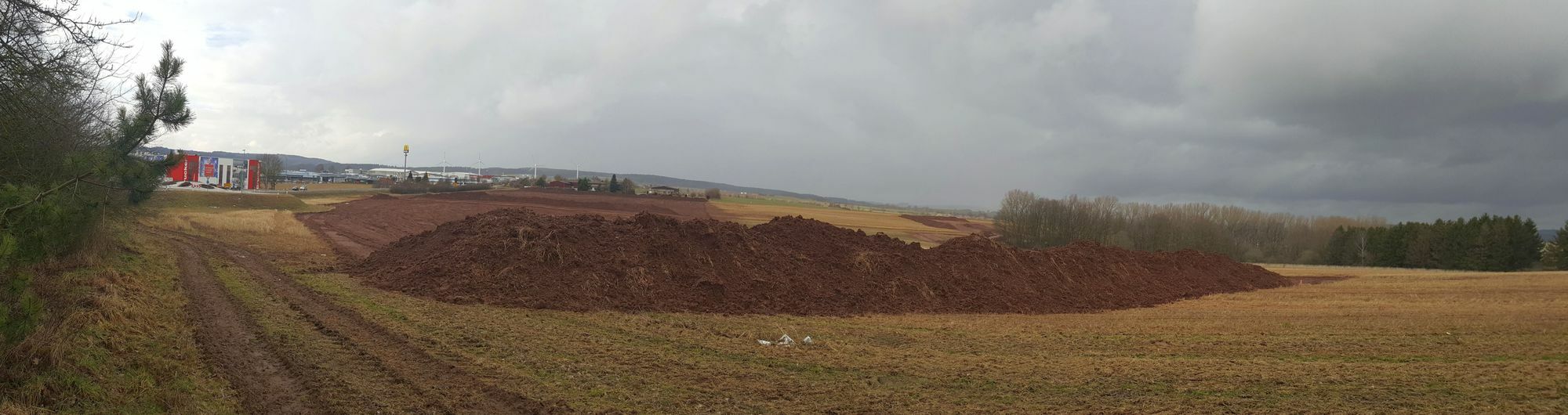 - Die Erde, die bislang bewegt wurde, verbleibt auf der Fläche und soll später zum Ausgleich von Unebenheiten oder zur Nivellierung von abschüssigen Flächen genutzt werden.