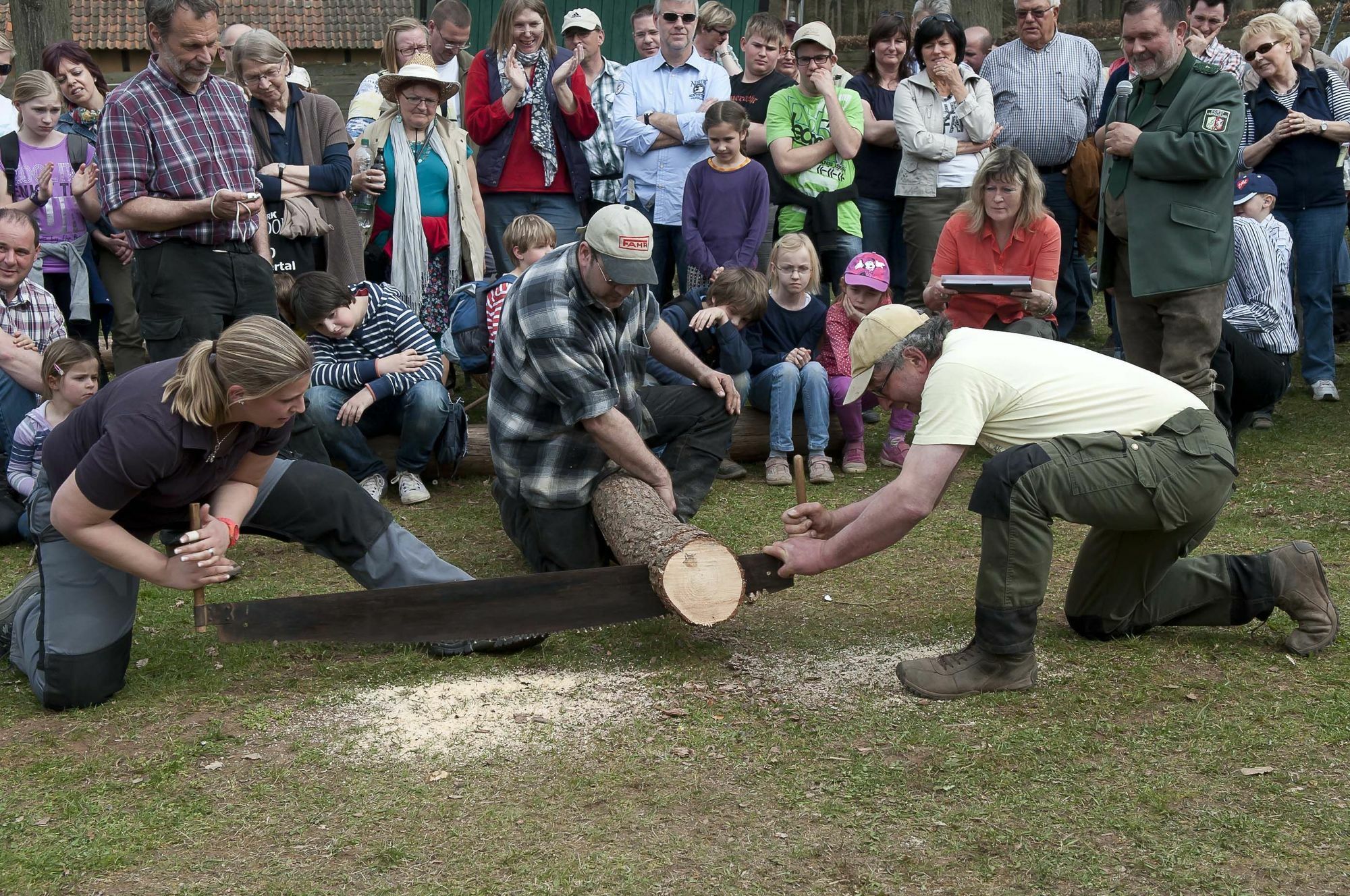 Wettsägen bei der Veranstaltung „Verrücktes Holz“ (Hans-Theo Gerhards/LVR)