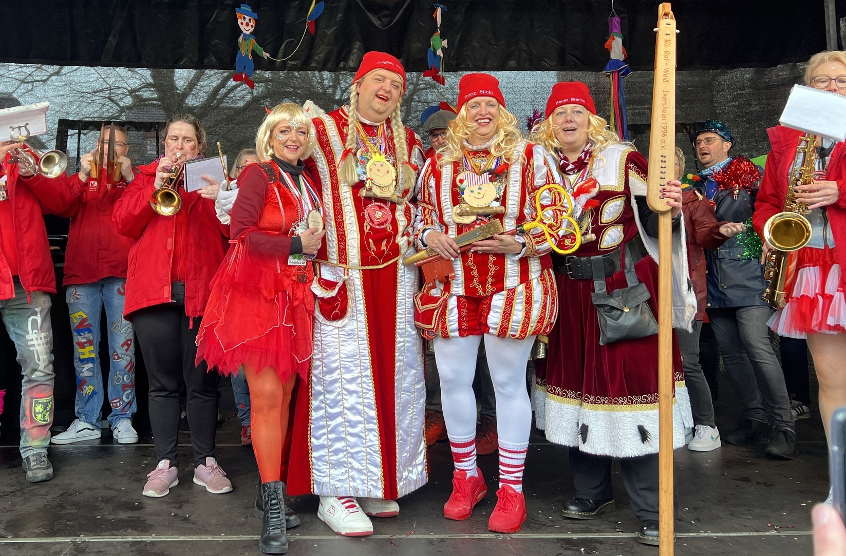 Im Bad Münstereifeler Rathaus schrillten heute wieder die Alarmglocken. Die Jecken vertreten durch Vereine des Karnevalsstammtisches aus dem Stadtgebiet Bad Münstereifel hatten unter dem Motto "Märchenwald" zum Strum auf den Sitz der Bürgermeisterin aufgerufen. Bürgermeisterin Sabine Preiser-Marian, in Gestalt des "Teufelchens mit den drei goldenen Haaren" lies sich die drei Haare und damit den Schlüssel zu Rathaus aber nur widerwillig entlocken. Erfolgreich war Moderator Michael Dormagen dann aber letztendlich mit Unterstützung des Dreigestirns aus Iversheim, Prinz Nicki I. Bauer Bianca I. und Jungfrau Hunsi I.