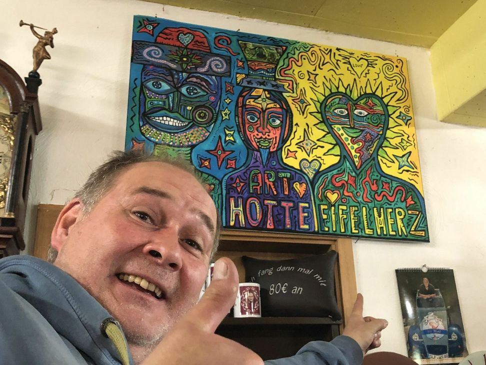 Mit seinem alten Ford geht der »80 Euro Waldi« alias Walter Lehnertz bei der 20. Scuderia Colonia Classic an den Start. Das Bild auf der Motorhaube hat Waldi übrigens mit dem bekannten Künstler Horst Kordes, letzter Schüler von Hundertwasser, gemeinsam gemalt. Dieser Künstler hat auch die Jacke gestaltet, die Walter Lehnertz trägt. Doch das ist eine Geschichte, die ein anderes Mal erzählt wird ... mn-Foto