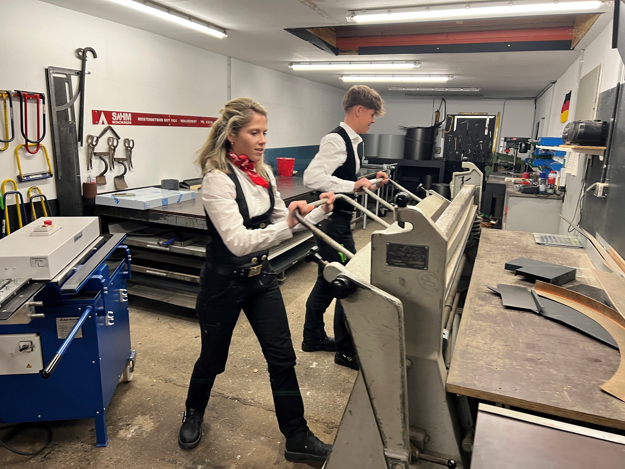 Das traditionelle Pressegespräch fand in diesem Jahr beim Weilerswister Traditions-Dachdeckerunternehmen Sahm Bedachungen statt, welches bereits auf eine 100-jährige Firmengeschichte zurückblickt. Das Unternehmen bildet traditionell junge Menschen aus. Auch Anna Sophie Sahm, deren Urgroßvater das Unternehmen 1924 gründete, ist heute im Unternehmen tätig. Nach einer abgeschlossenen Ausbildung als Groß- und Außenhandelskauffrau und einem Studium im Handelsmanagement entschloss sie sich, mit 30 ins Handwerk zu gehen, machte eine Ausbildung zur Dachdeckerin und arbeitet heute als Meisterin im elterlichen Betrieb, in dem übrigens auch ihre Mutter Anita arbeitet. Sie hat ebenfalls ihren Meister im Dachdeckerhandwerk.