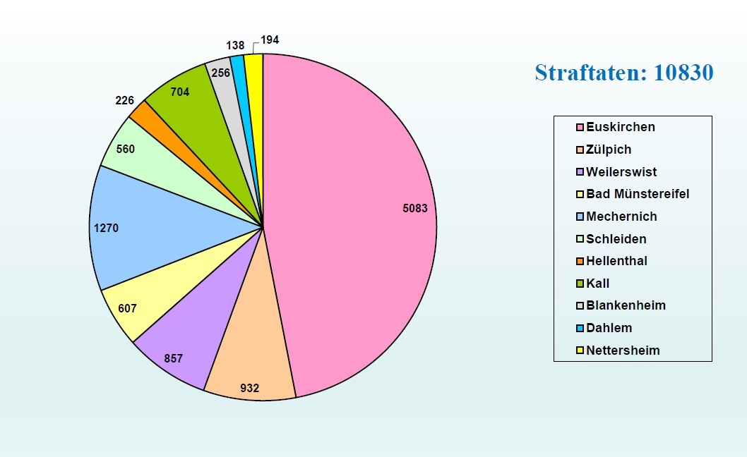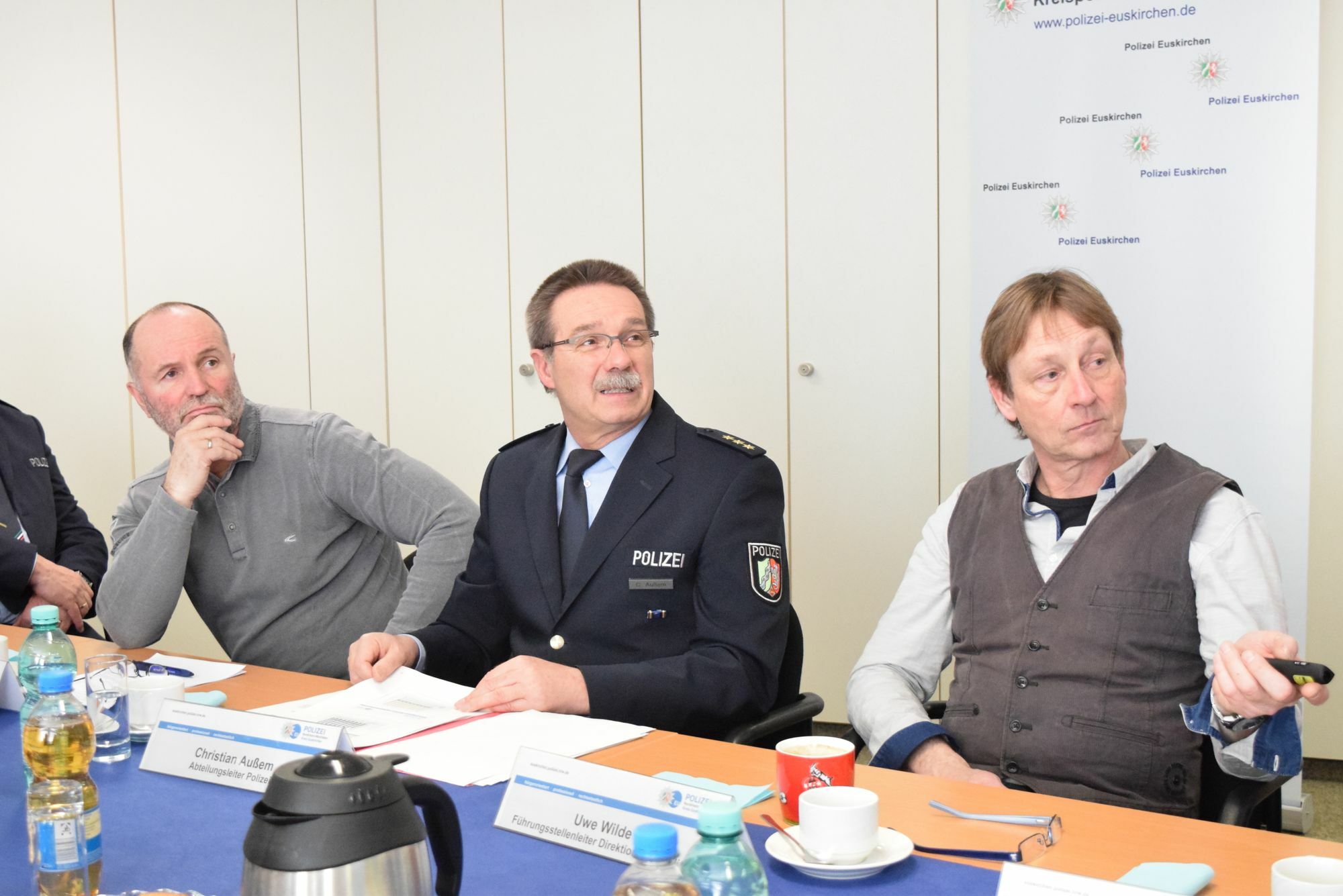 »Die Welt sieht diesmal besser aus als im Vorjahr«, verkündet Christian Außem, Polizeidirektor bei der Kreispolizeibehörde Euskirchen, bei der Vorstellung der Kriminalitätsstatistik. In 2017 hat es insgesamt einen Rückgang der Straftaten um 722 Delikte auf 10.830 Straftaten (-6,25 Prozent) gegeben. Zurückzuführen sei dies auch auf den langen Winter. »Bei -17 Grad Celsius ist es selbst Einbrechern zu kalt«, so Außem. Dementsprechend fällt auch die Zahl der Wohnungseinbrüche geringer aus als in 2016. 363 Delikte gab es, das sind 130 weniger als im Vorjahr. Einen deutlichen Rückgang gibt es auch bei den Diebstählen: Insgesamt wurden 4.234 verübt. Im Vorjahresvergleich sind das 21,9 Prozent weniger. Objektiv betrachtet gibt zwar auch die Anzahl der Delikte im Bereich Vermögen/Fälschung (2.254) Anlass zur Freude, schließlich sind es 70 Fälle weniger als zuvor, doch die Polizisten sind beunruhigt: »Von diesen Fällen sind allein 755 Kreditbetrug, die häufig auf das Internet zurückzuführen sind«, so Außem. Generell sollten die Menschen vorsichtiger im World Wide Web unterwegs sein. Die Online-Kriminalität habe zugenommen. Außerdem wurden mehr Taten verübt, die unter »Sexualdelikte« (125) und »Körperverletzung« (1.097) fallen. Außem ergänzt: »Seit der Silvesternacht 2015/2016 in Köln werden aber auch häufiger Anzeigen erstattet«. Die gestiegene Bereitschaft, Anzeige zu erstatten, führt auch dazu, dass der Polizei mehr Fälle von häuslicher Gewalt bekannt werden. Wurden in 2016 noch 148 zur Anzeige gebracht, waren es 2017 sogar 237 Fälle. Die meisten Täter sind männlich.