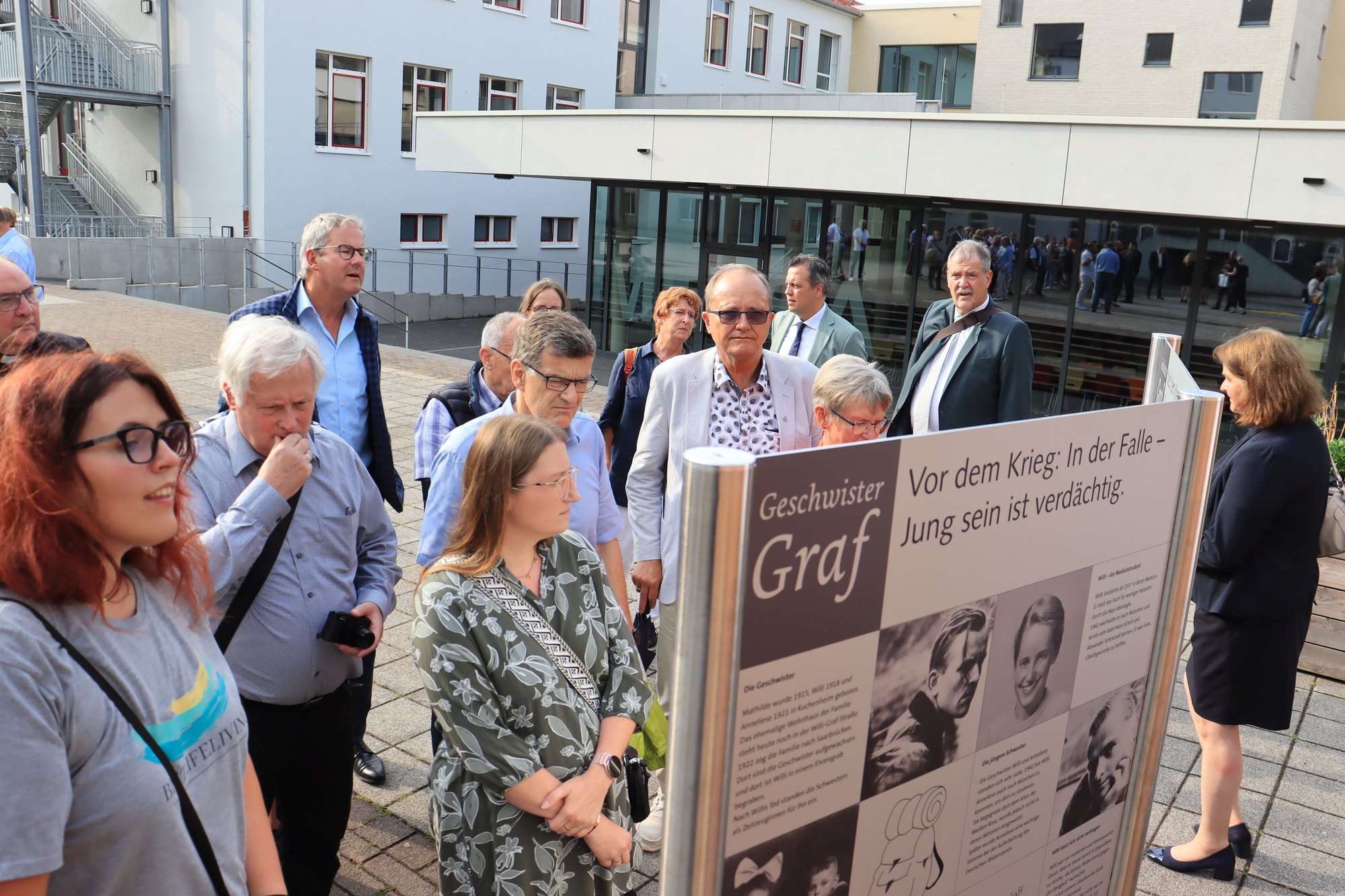 »Willi Graf ist eine ganz herausragende Persönlichkeit, und das bei weitem nicht nur für Euskirchen. Die Stadt ist sehr stolz, ihm und seiner Schwester mit dieser Umbenennung Anerkennung und Hochachtung zollen zu dürfen. Dass eine Realschule bis Mitte der 2010er Jahre den Namen von Willi Graf trug, hat dazu geführt, dass man sich gerade als junger Mensch, irgendwann gefragt hat, welche Person, welches Schicksal dahintersteckt«, erinnerte sich Bürgermeister Sacha Reichelt bei seiner Ansprache.