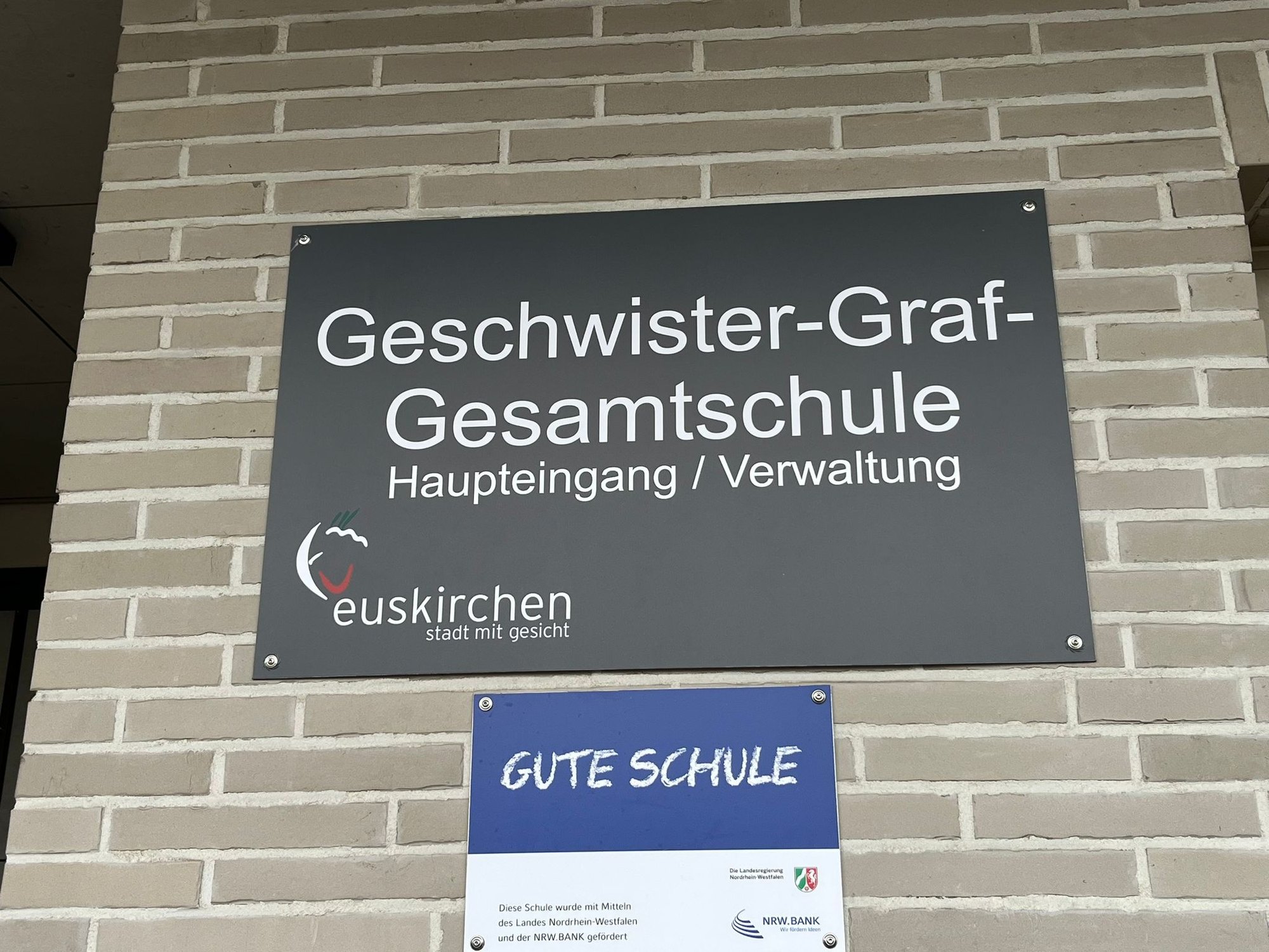 Der Diözesanrat hatte als besonderes Geschenk für die Schule eine Tafel gestiftet. Der große Abschluss der Umbenennungsfeier war dann auch die Enthüllung dieser Informationstafel auf dem Schulhof. Darauf wird das Schicksal der Geschwister Graf sowie ihre Haltung und ihr Wirken erläutert.