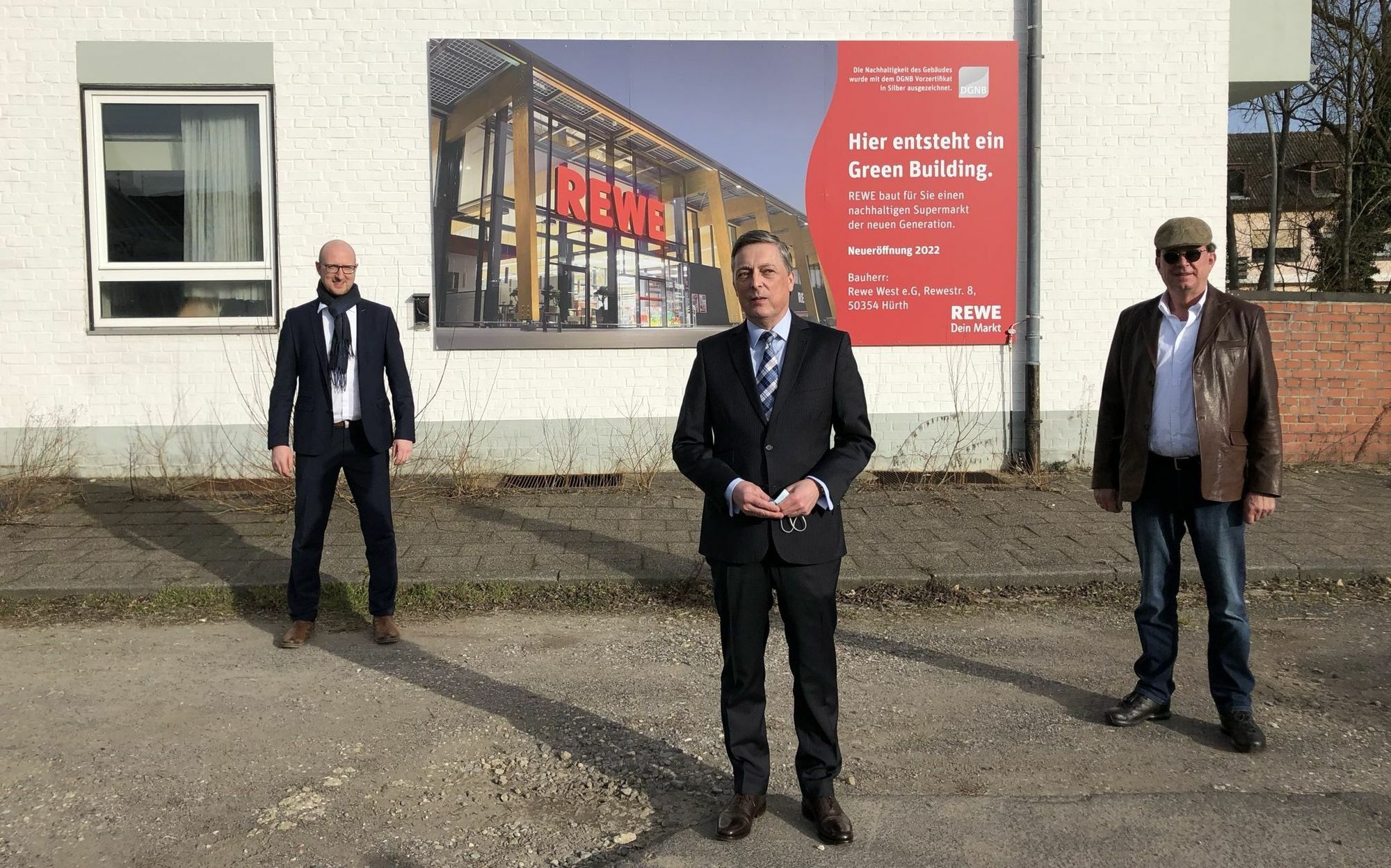Der Prokurist der REWE West eG, Alfred H. Friesdorf, wies daraufhin, dass der neue REWE-Markt nicht exakt so aussehen werden, wie auf der neuen Tafel. Tatsächlich biete er zahlreiche ressourcenschonende Aspekte: Eine energieeffiziente Tageslichtarchitektur, den Einsatz umweltverträglicher und leicht recyclebarer Baustoffe wie Holz sowie Kälte- und Klimaanlagen mit natürlichem Kältemittel. Durch den richtungsweisenden Einsatz modernster Heizungs-, Lüftungs-, Beleuchtungs-, Klima- und Kälteanlagen in Kombination mit bester Dämmung verringere sich der Energieverbrauch des Green Buildings im Vergleich zu einem Standardbau um beinahe 40 Prozent.