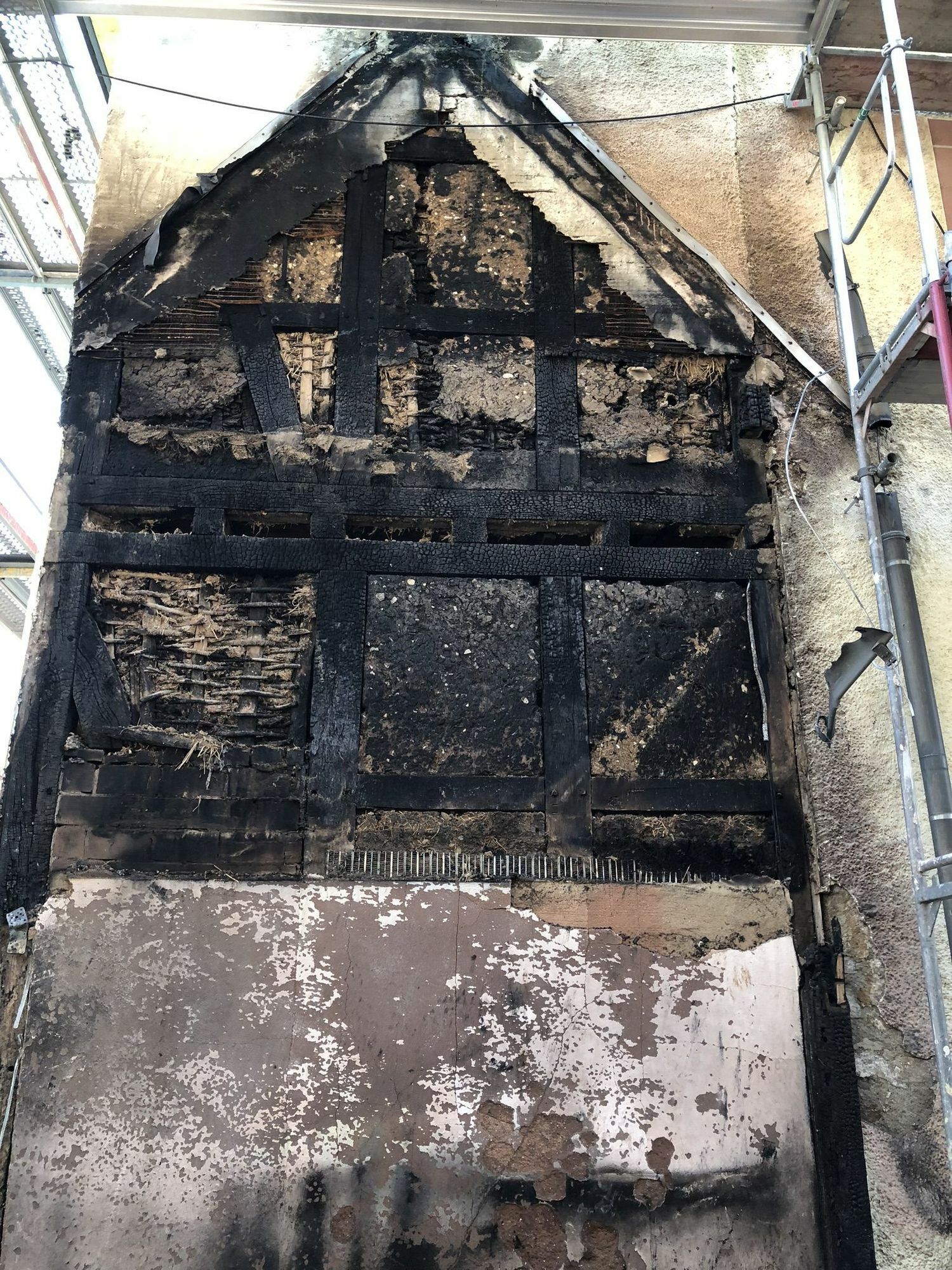 Die mächtigen Mauern sind mit Wasser getränkt, der Dachstuhl des alten Pfarrhauses abgebrannt - das verheerende Feuer an der evangelischen Kirche in Hellenthal hat großen Schaden angerichtet.