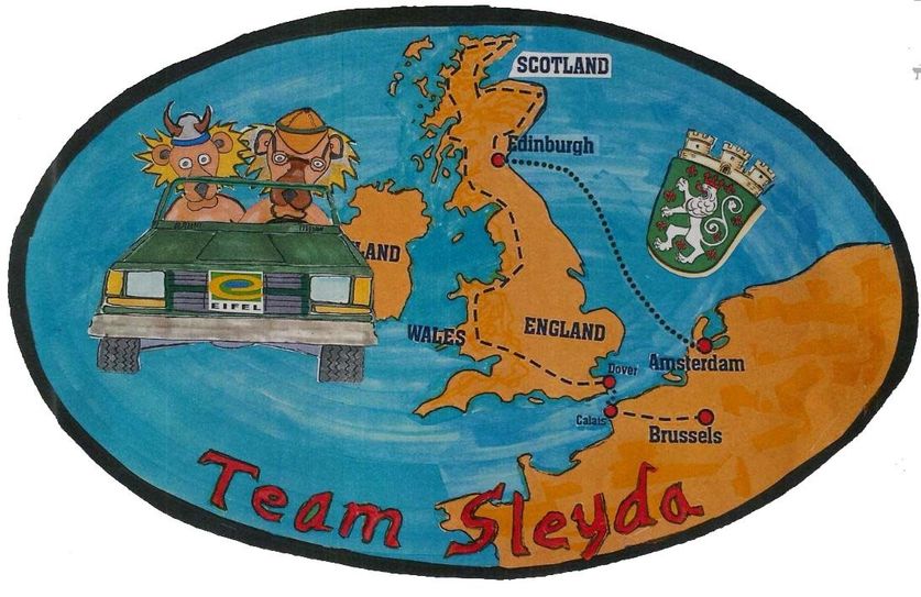 »Vor allen Dingen«, lacht Gregor Scheld, »werden wir mit dem Linksverkehr auf der Insel zurecht kommen müssen. Schließlich haben wir dort das Lenkrad auf der falschen Seite.« Die Großbritannnien-Rallye startet bereits am Samstag, 13. Mai, in Brüssel. Von dort aus geht es zum Kanal, wo man nach Dover übersetzt. Von der südlichsten Spitze England geht es dann weiter über den östlichsten Zipfel Wales bis hin zur nördlichsten Spitze der Britischen Insel, in die Schottischen Highlands, wo Hochmoore und Heidelandschaften, Whisky und Wolle sowie Schottenrock und Dudelsack zuhause sind. Ziel ist am 22. Mai Edinburgh. Das Interessante auch bei dieser Rallye ist für das Team Sleyda, dass wieder kein bestimmter Weg vorgegeben ist. »Den müssen wir dann schon selbst finden«, so Ede Hanf. Allerdings erhalten die Teilnehmer am Start ein Roadbook, in dem spezielle Missionen mit verrückten Aufgaben, Street Challanges auf faszinierenden Straßen, Meet and Greet Points sowie Hinweise zu den offiziellen Rallye-Partys vermerkt sind.